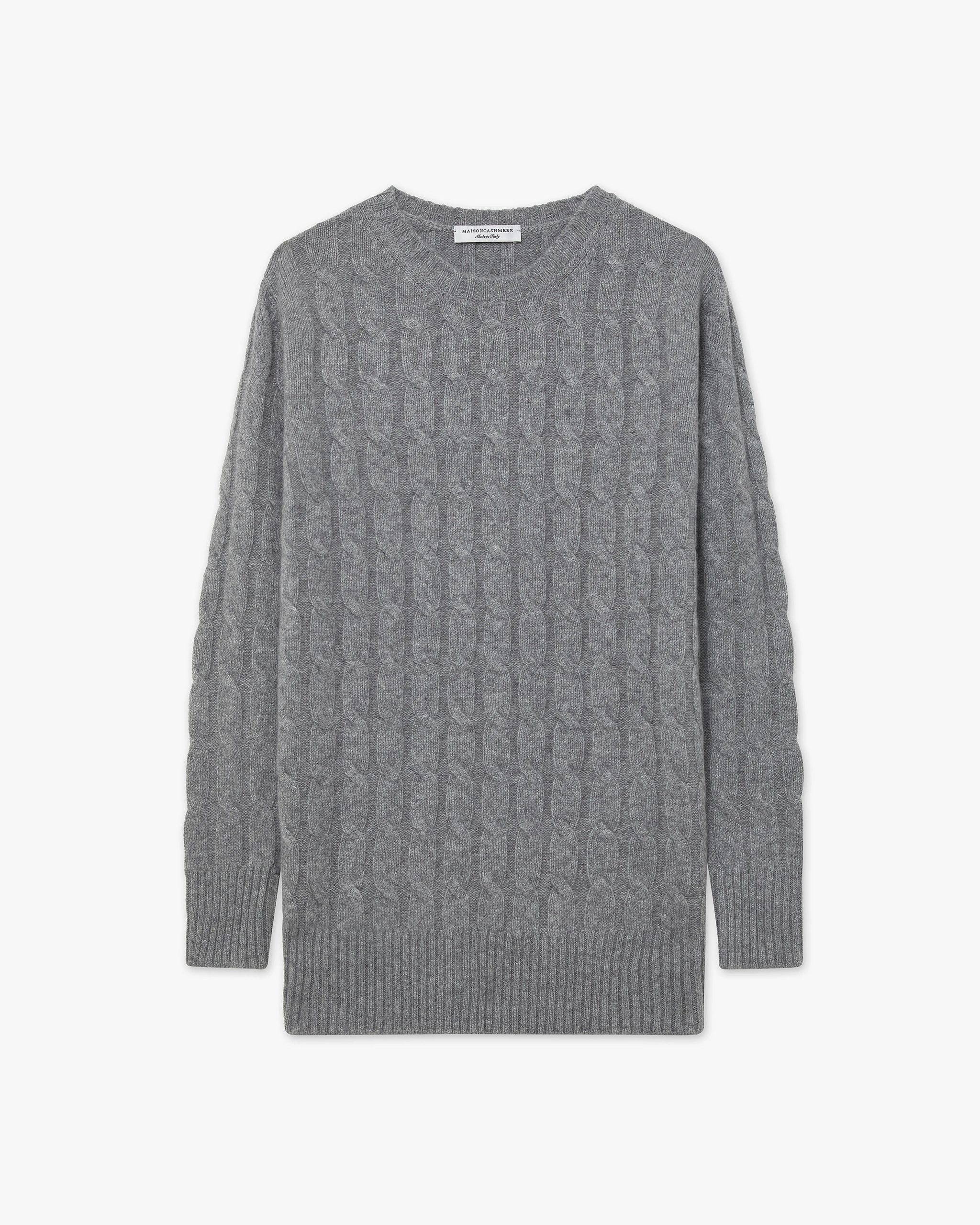 The most classic women’s sweater design is made unique by its all-over cable knit pattern, with cables spaced evenly and distinctly. Finely crafted ribbed trims, 6 cm high at the cuffs and hem, add a refined touch. A perfect blend of innovation and comfort, with all the elegance and warmth of pure cashmere yarn.