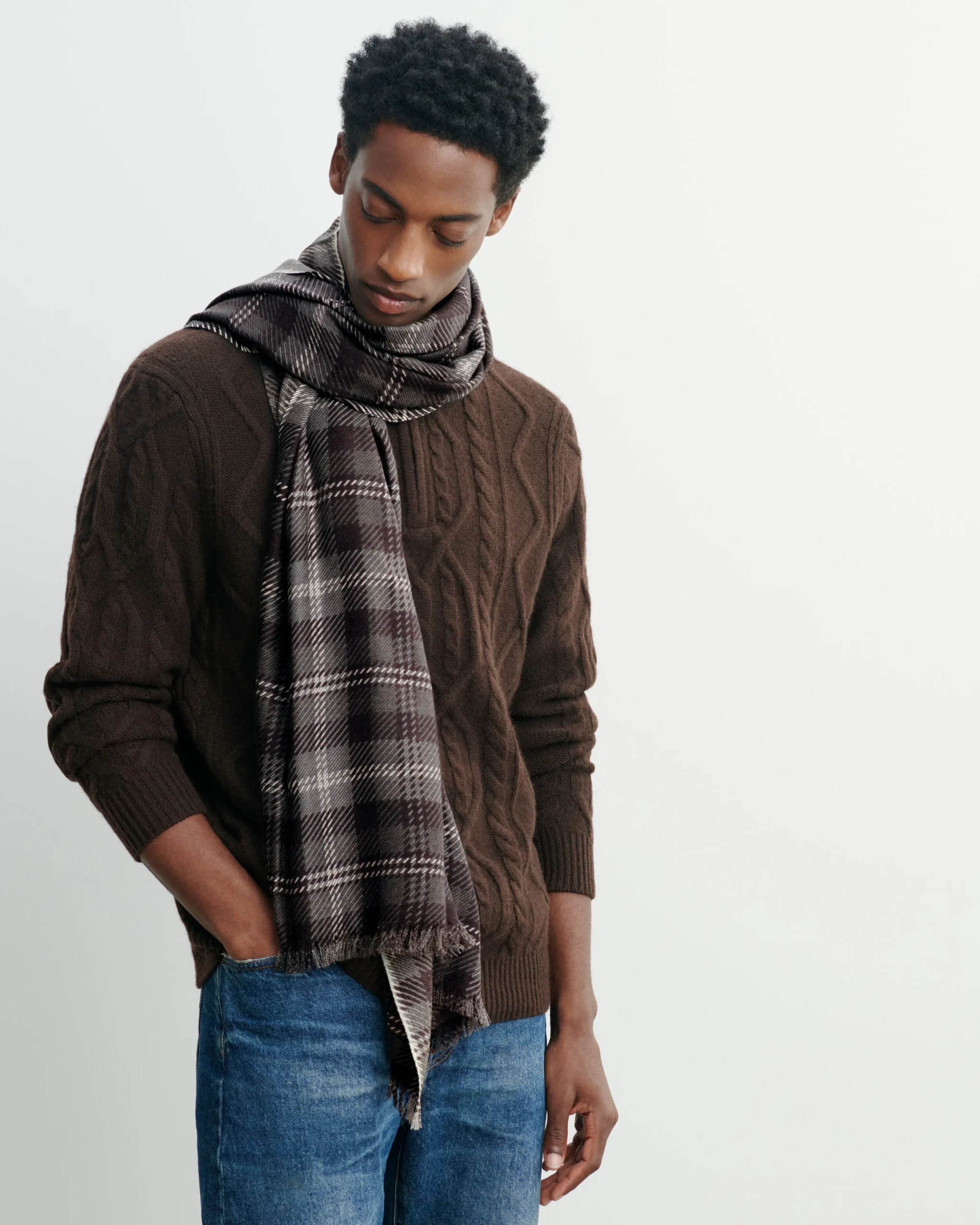Étole en cachemire tissé ultrafin et léger. Imprimé à motif tartan.