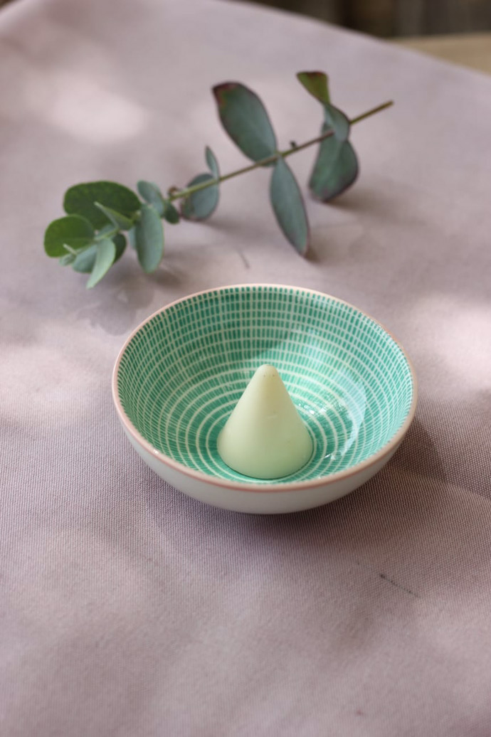 Il vous suffit de déposer le fondant dans un brûle parfum et d’allumer une bougie chauffe-plat, en fondant celui-ci libérera son parfum et embaumera votre maison d’une délicieuse odeur.