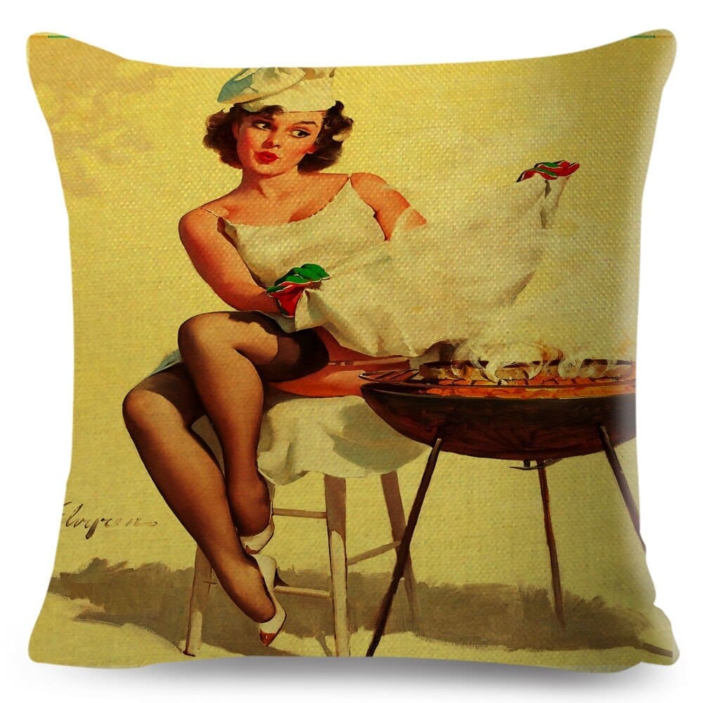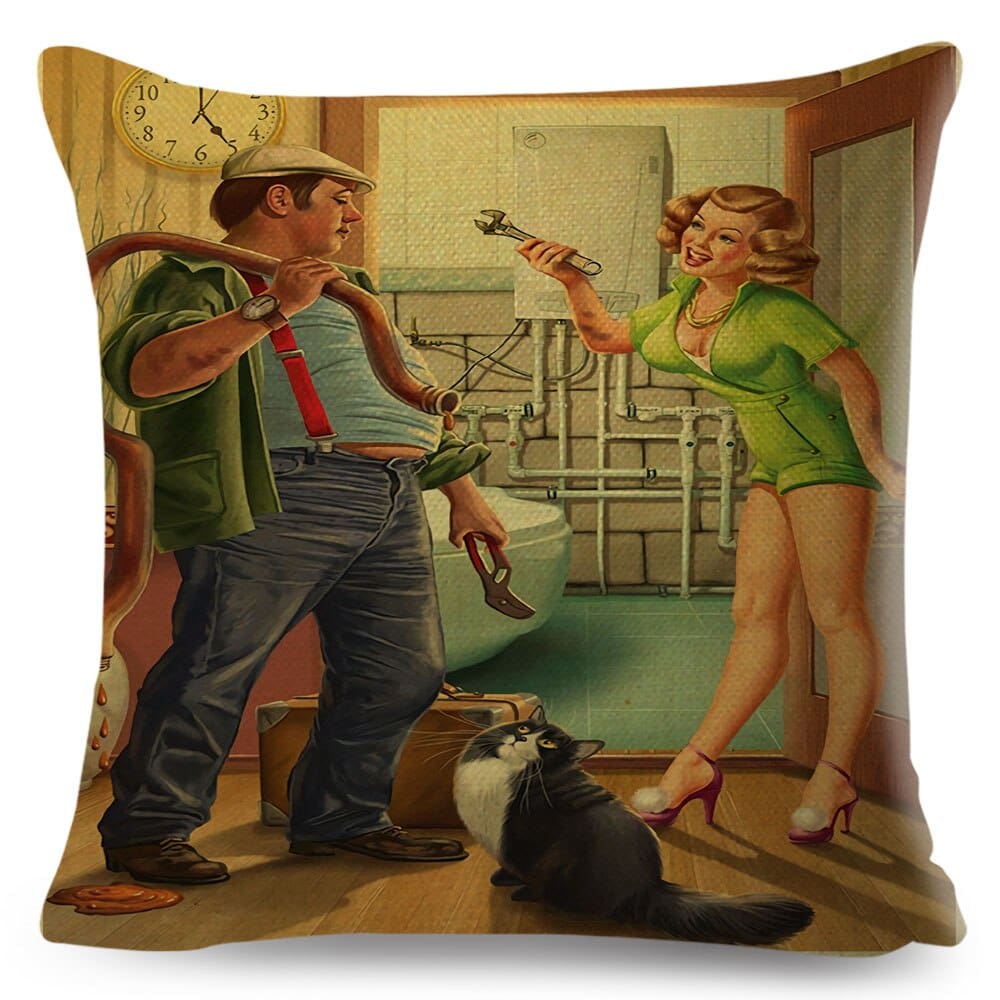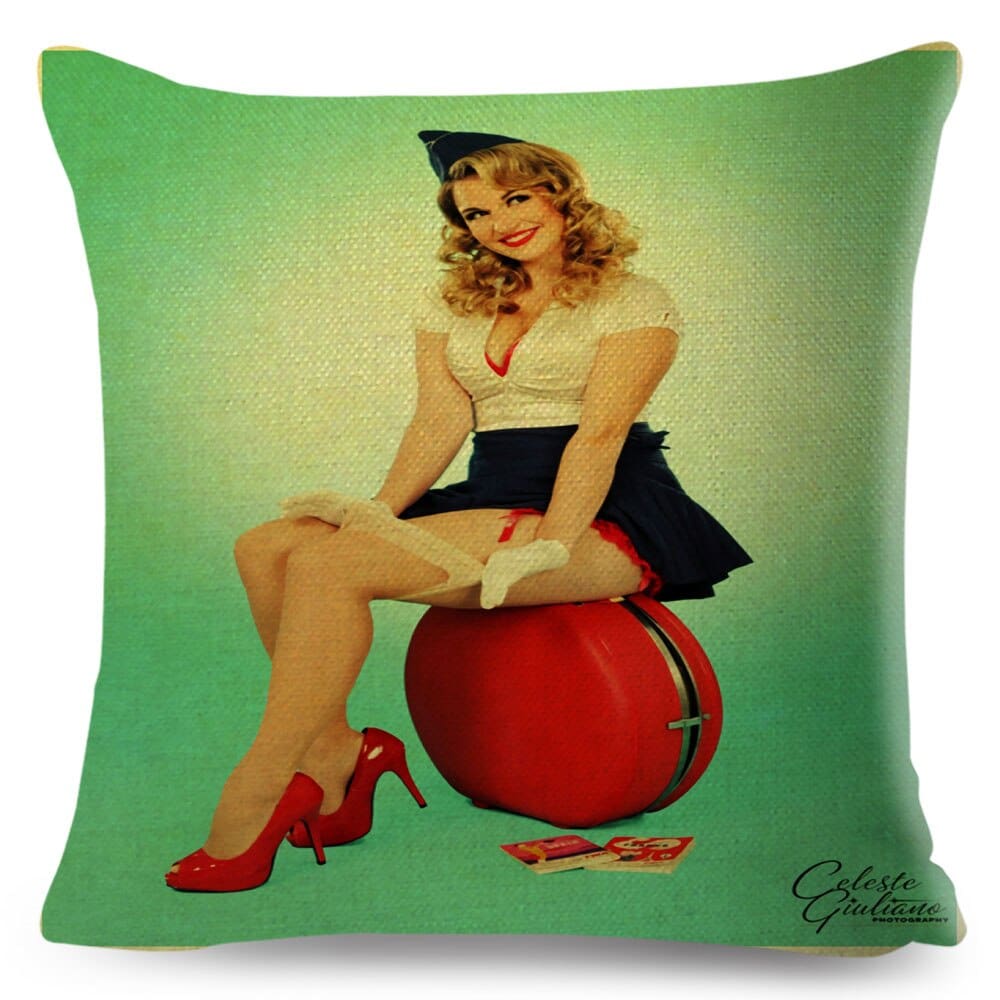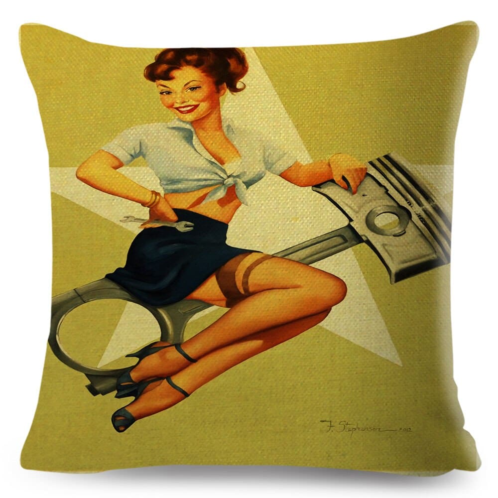 Ajoutez une touche rétro à votre intérieur avec cette housse de coussin vintage en forme de pin-up, parfaite pour la maison, le bar beauf, le canapé beauf, le siège beauf et le salon beauf!