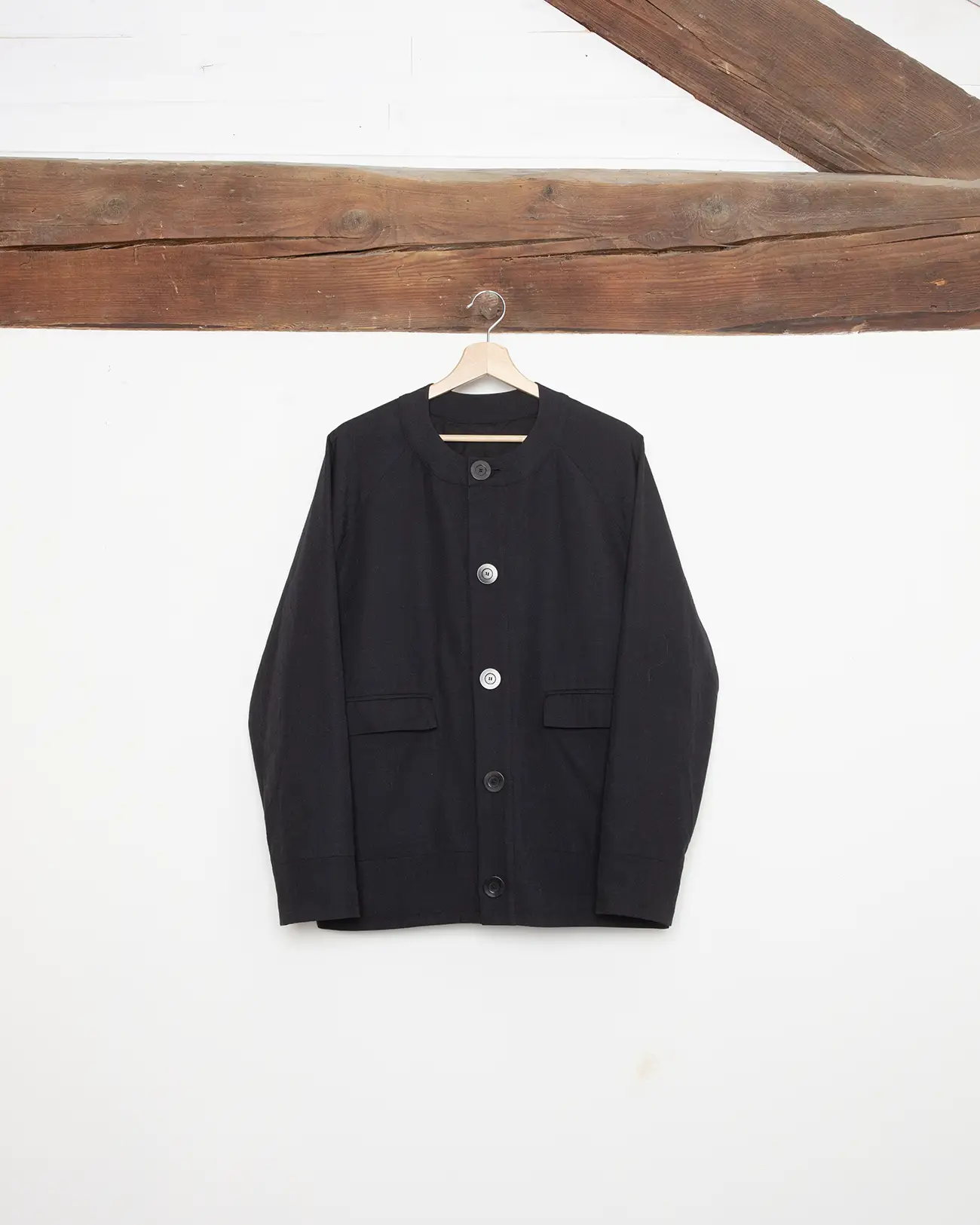 Veste légère col rond en toile de laine française.