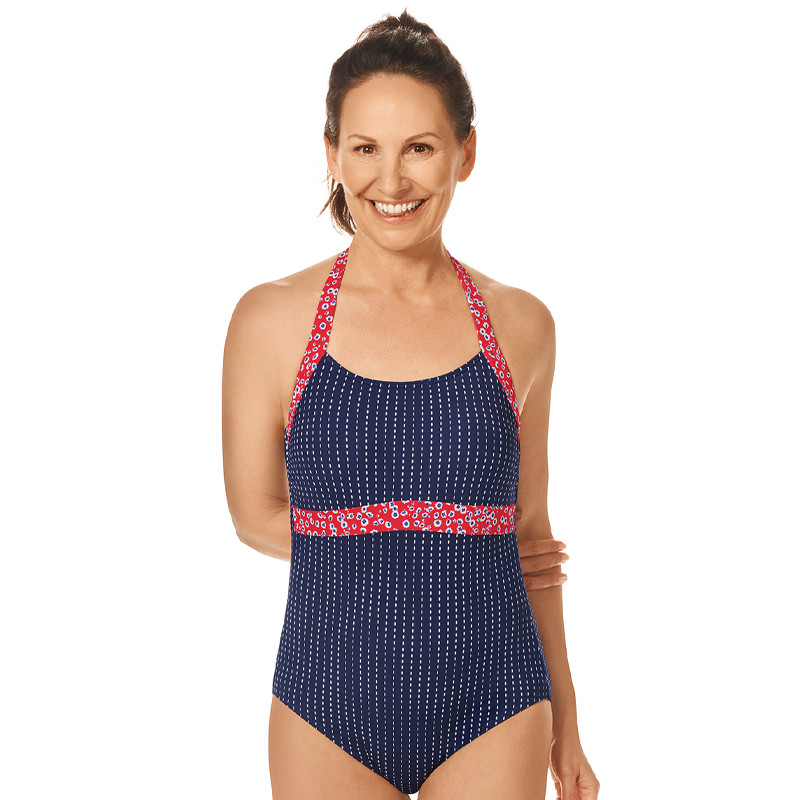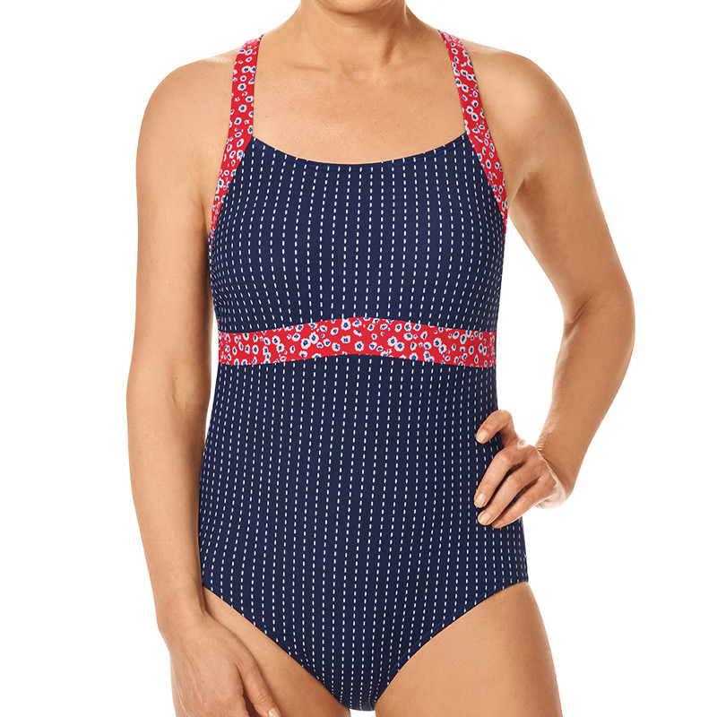 Maillot de bain Algarve- 1 pièce – Marine/bandes fleuries