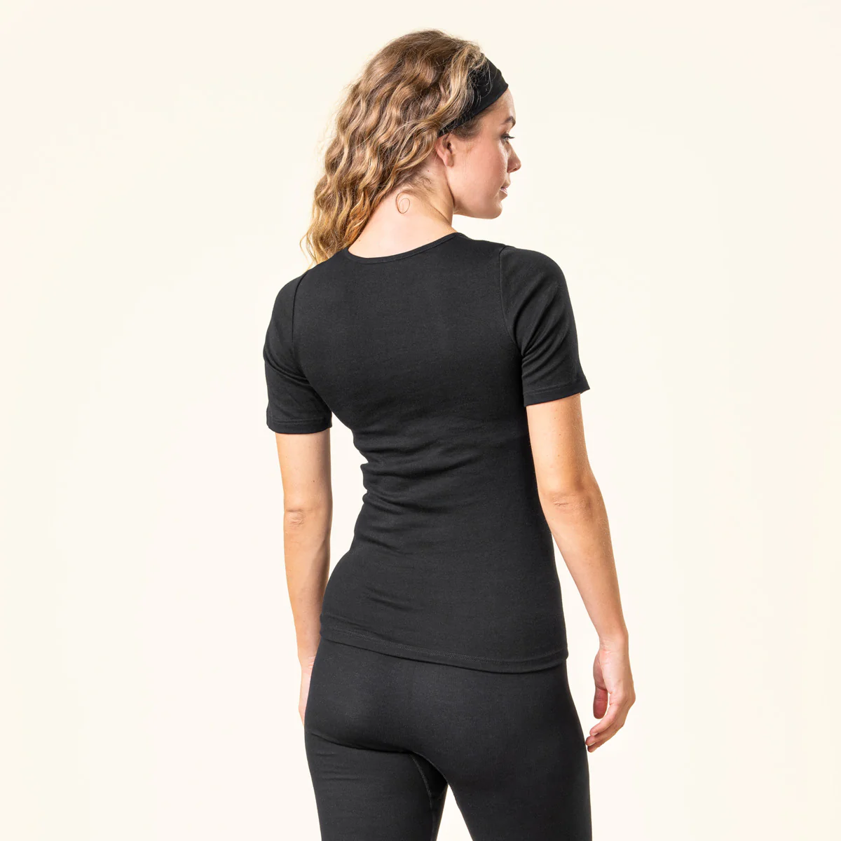 Ce T-shirt manches courtes pour femme, confectionné en 100 % coton biologique, est un basique essentiel pour votre garde-robe. Sa coupe près du corps et ses fines côtes assurent un ajustement confortable et élégant, tandis que l’absence de coutures latérales le rend particulièrement agréable à porter. Polyvalent, il peut être porté en maillot de corps ou comme tee-shirt décontracté.