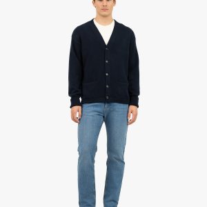 Relaxed-fit cardigan in pure cashmere, featuring a clean, contemporary silhouette. The deep V-neck and visible buttons add a touch of effortless elegance, while the wide ribbed trims at the cuffs and hem ensure added comfort and structure. A piece that blends artisanal elegance with everyday comfort.