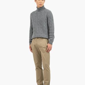 Our men’s cashmere turtleneck is perfect for the cold season. Made using only the finest 2-ply cashmere, we’re sure you’ll appreciate its exceptional warmth and its fine details. Its fold-down neck is soft and will fit snuggly without making you feel uncomfortable. Whether worn with a pair of jeans, or under your favorite blazer for a more elegant style, this turtleneck is a truly classic item that your wardrobe shouldn’t be without.