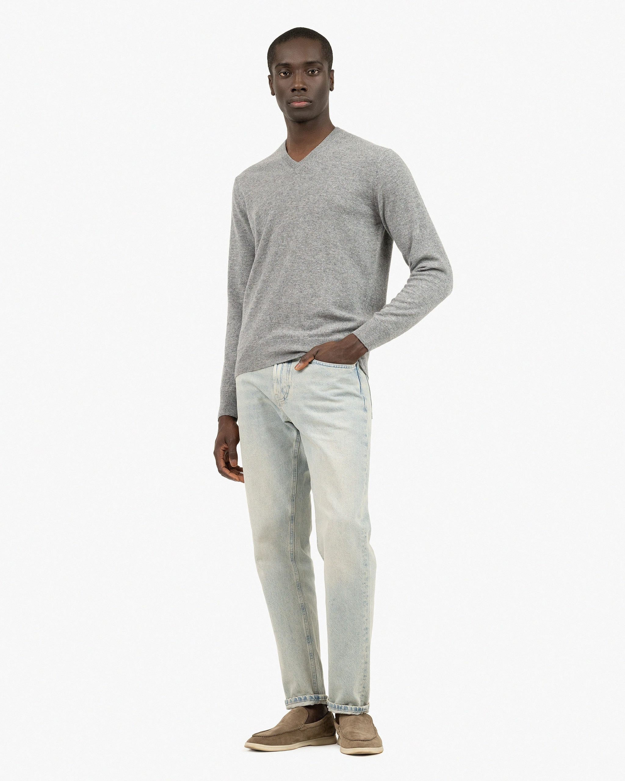 Many are the times in which we need to look our best, with a simple yet formal style; a versatile V-neck sweater, in the finest pure cashmere, is the perfect solution. Such an essential sweater is perfect for everyday wear; we’ve designed ours with a neckline that will look great paired with your favorite shirt. In a variety of basic colors, like navy blue, black or grey mélange, we think your wardrobe is incomplete without it.