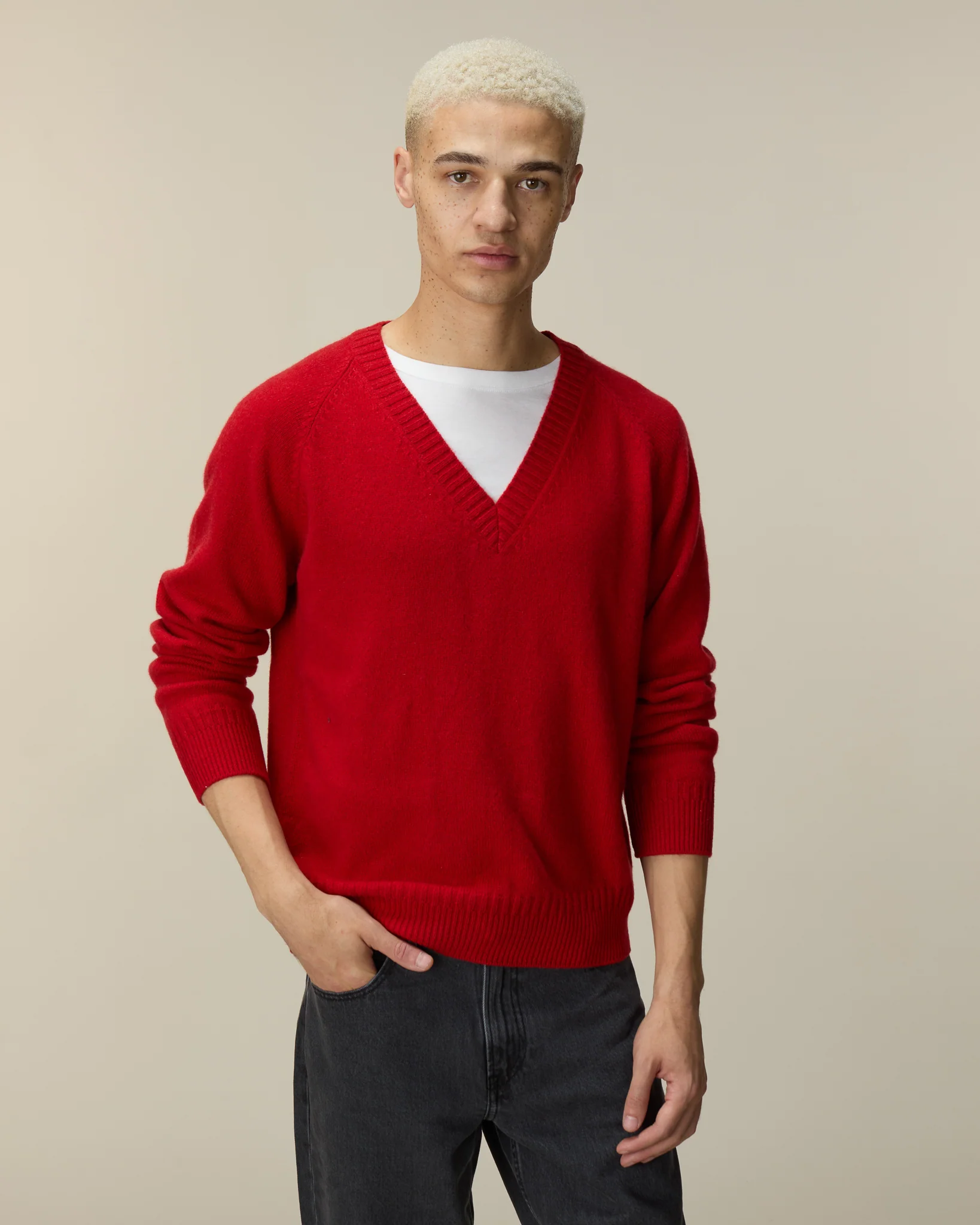 Knitted in dense yet soft cashmere, the deep V‑neck elevates a timeless essential with its oversized fit and boxy volume. A clean silhouette that flatters every shape, it balances relaxed ease with refined elegance. Built to endure, it unites comfort and modernity in an effortless staple.