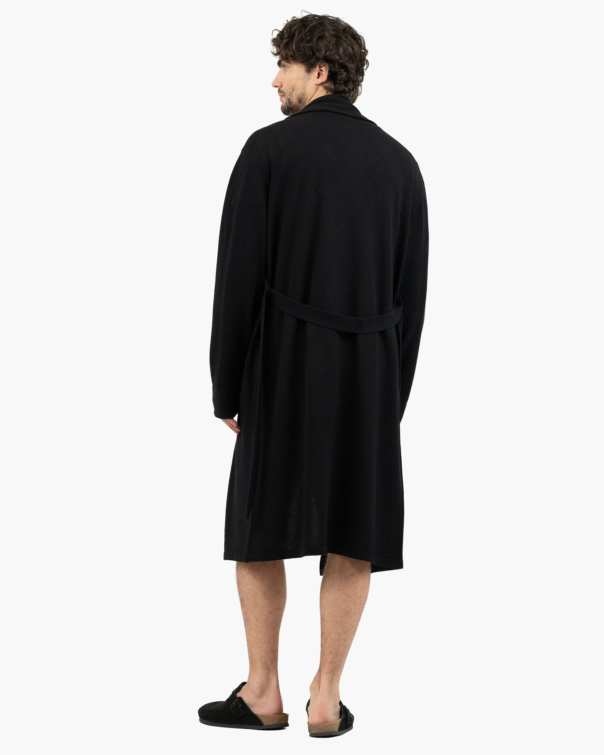 The most coveted robe for your moments of relaxation at home. Carefully crafted, it features a double-knit shawl collar, flat trims along the hem and cuffs, practical patch pockets, and a matching belt threaded through discreet side loops. Refined and luxurious, thanks to its natural pure cashmere yarn.