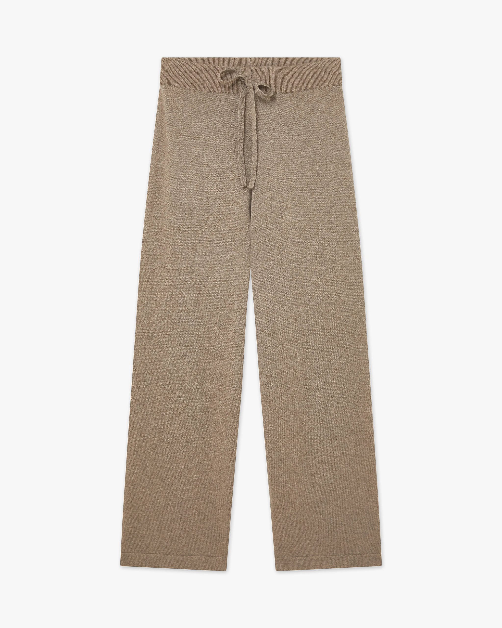 These pure cashmere palazzo trousers combine ultimate comfort with refined warmth. Featuring a clean, straight cut, they are crafted in smooth stockinette stitch with a double elastic waistband and drawstring, falling softly to a flat hem. A true pleasure to wear, they will elevate countless moments of your day with their perfect balance of practicality and sophistication.