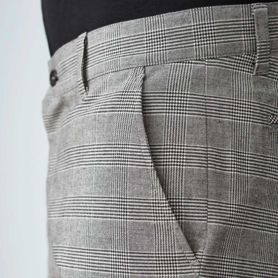 Apportez une touche de raffinement à votre garde-robe avec le pantalon à carreaux LASSE. Sa coupe tailleur/chino offre une silhouette élégante et moderne, idéale pour toutes les occasions.