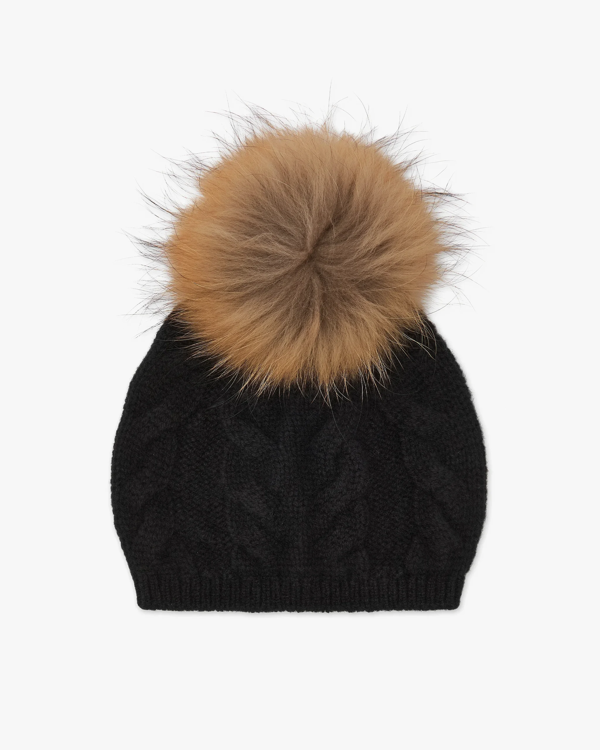 One of our most beloved styles, this cable-knit bobble hat with real fur pom-pom is perfect for cold winter days. Distinctive and versatile, it complements any look – from elegant coats to on-trend or streetwear outfits.