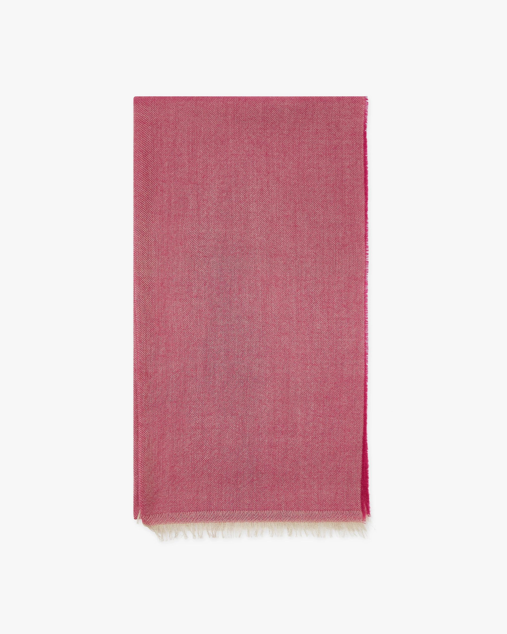An elegant and original wrap, crafted from fine yarns and offered in various shades interwoven with a delicate diagonal white pattern. Especially refined is the white fringe trim at the hem, bordered by a subtle edging. Incomparably soft and warming.