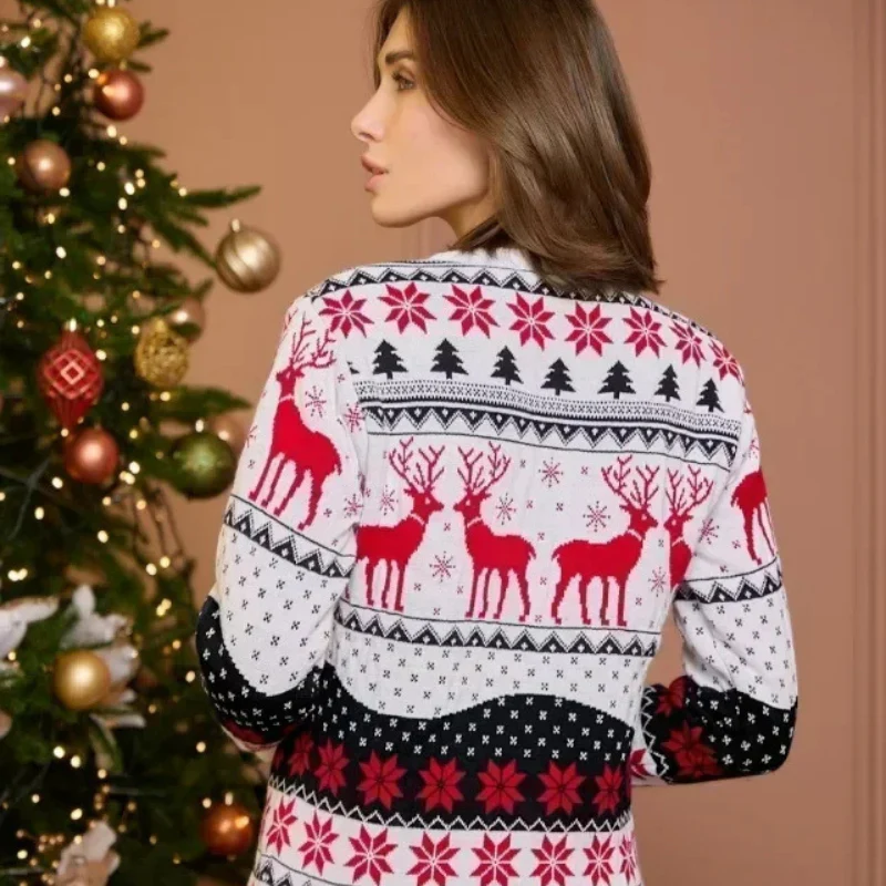 Pull de Noel Couple Motif Renne Rouge et Blanc