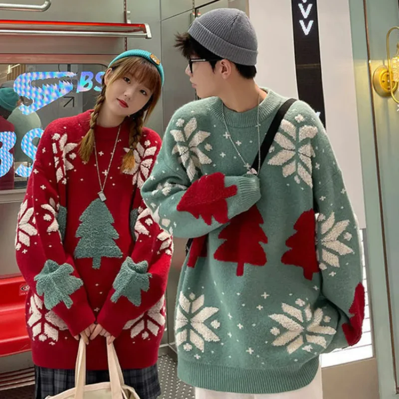 Pull de Noel Couple Oversize Rouge et Vert