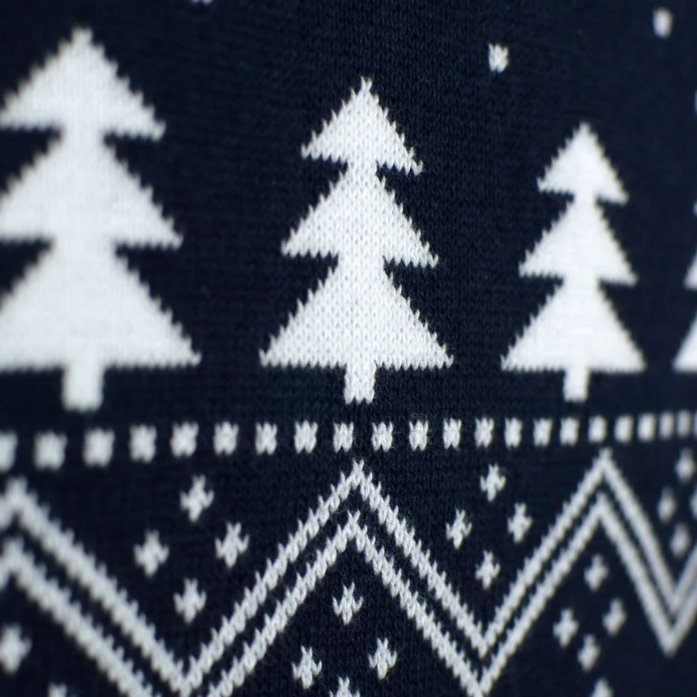 Pull de Noël pour Couple Bleu Sapins, Bonhommes de Neige et Père Noël