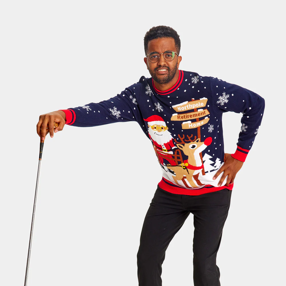 Pull de Noël pour Couple Père Noël avec Déambulateur sur la Voie de la Retraite