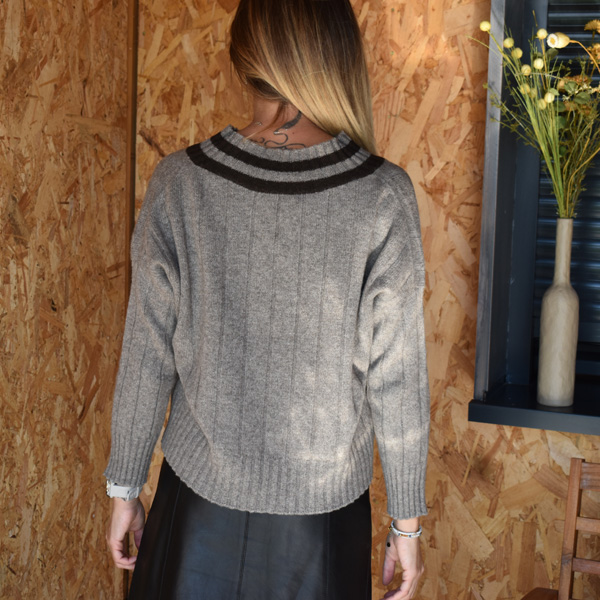 Le pull est disponible en une couleur naturelle et élégante : le gris. Cette couleur universelle s’intègre parfaitement à toutes vos tenues et peut être portée à la fois en journée et en soirée.