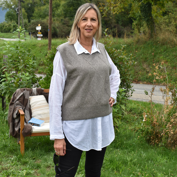 Ce pull femme en laine sans manches est parfait pour une multitude d’occasions. Vous pouvez le porter seul sur un pantalon ou une jupe, ou le combiner avec un t-shirt ou une chemise pour un look plus élégant. Son design polyvalent le rend adapté aux déjeuners entre amis, aux sorties en ville ou même aux jours de travail.