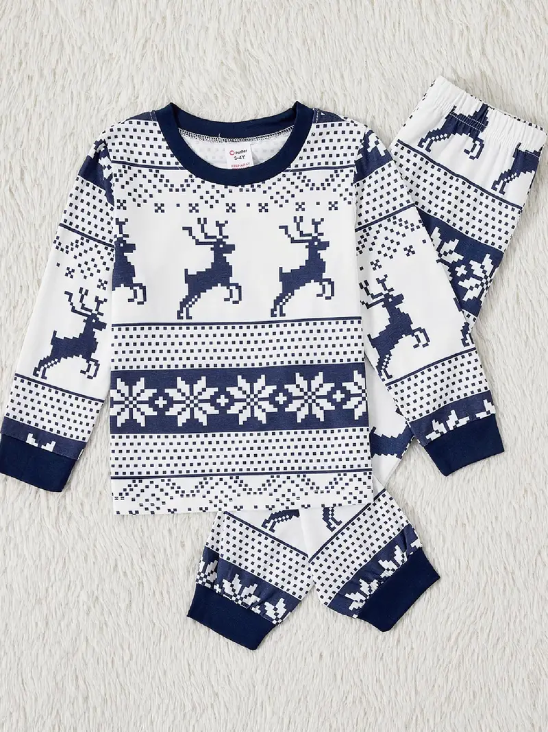 Célébrez les fêtes avec ce Pyjama Famille de Noel en Bleu et Blanc Rennes, conçu en 97% polyester, 3% élasthanne. Son col ras du cou et ses motifs Noël raviront petits et grands.