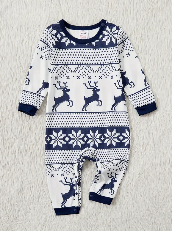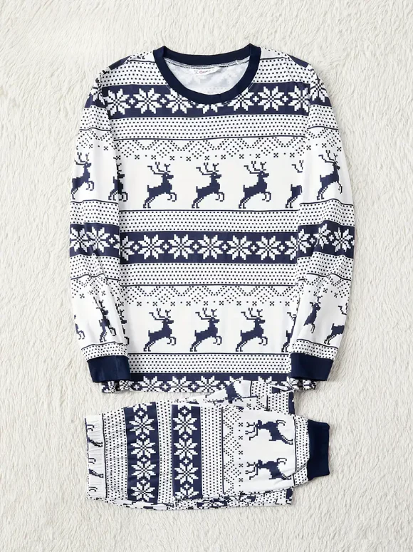 Pyjama Famille de Noel en Bleu et Blanc Rennes