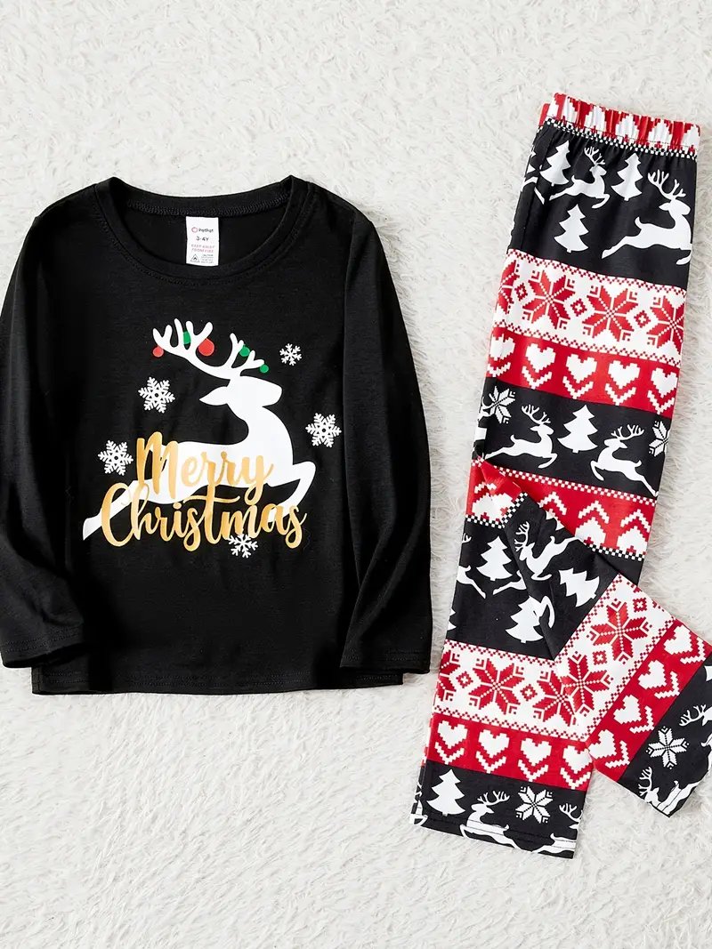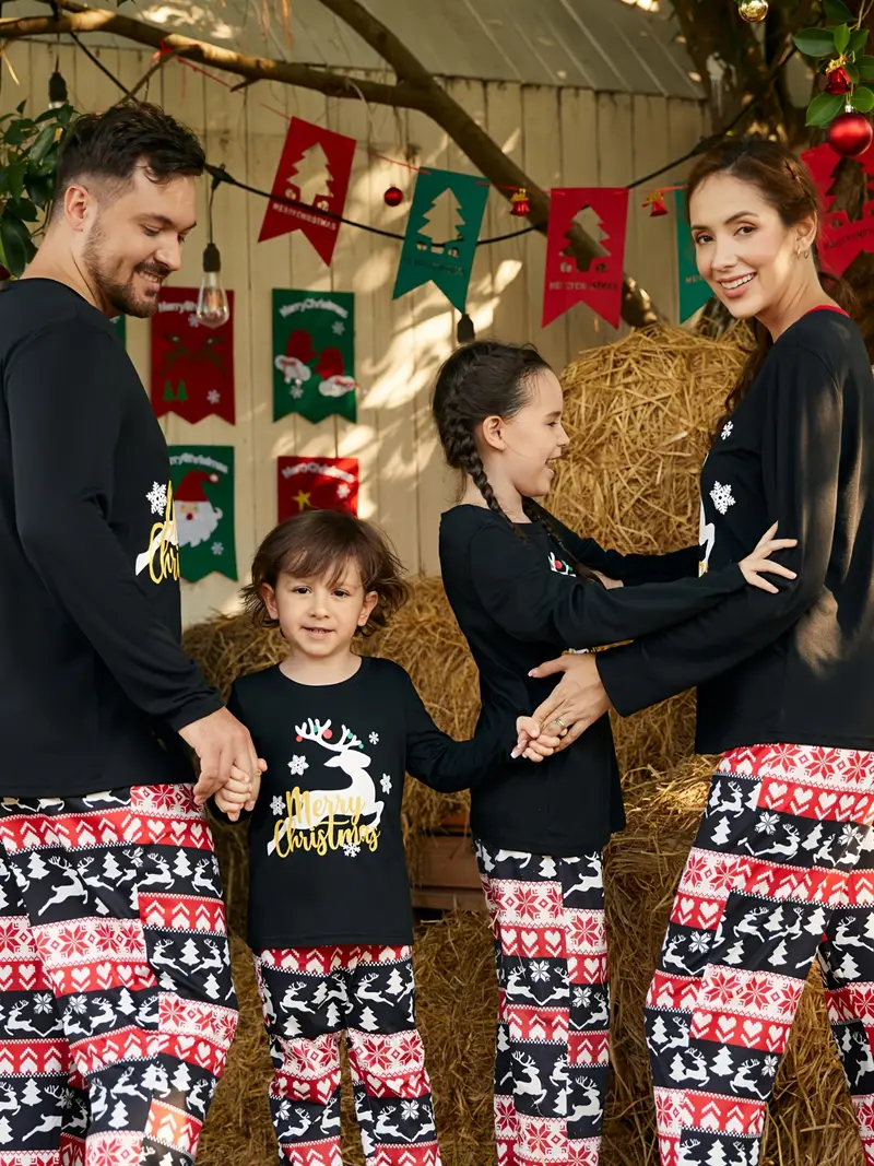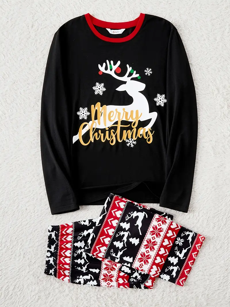 Pyjama Famille Noir et Rouge avec Motifs Noel Rennes