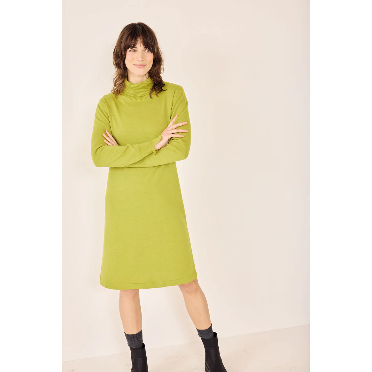 Sa coupe féminine avec manches longues, col roulé et longueur sous le genou en fait une pièce polyvalente, aussi bien pour les journées cocooning que pour les sorties hivernales. La texture souple et chaleureuse de la maille apporte un confort incomparable, tout en garantissant une allure élégante et intemporelle.