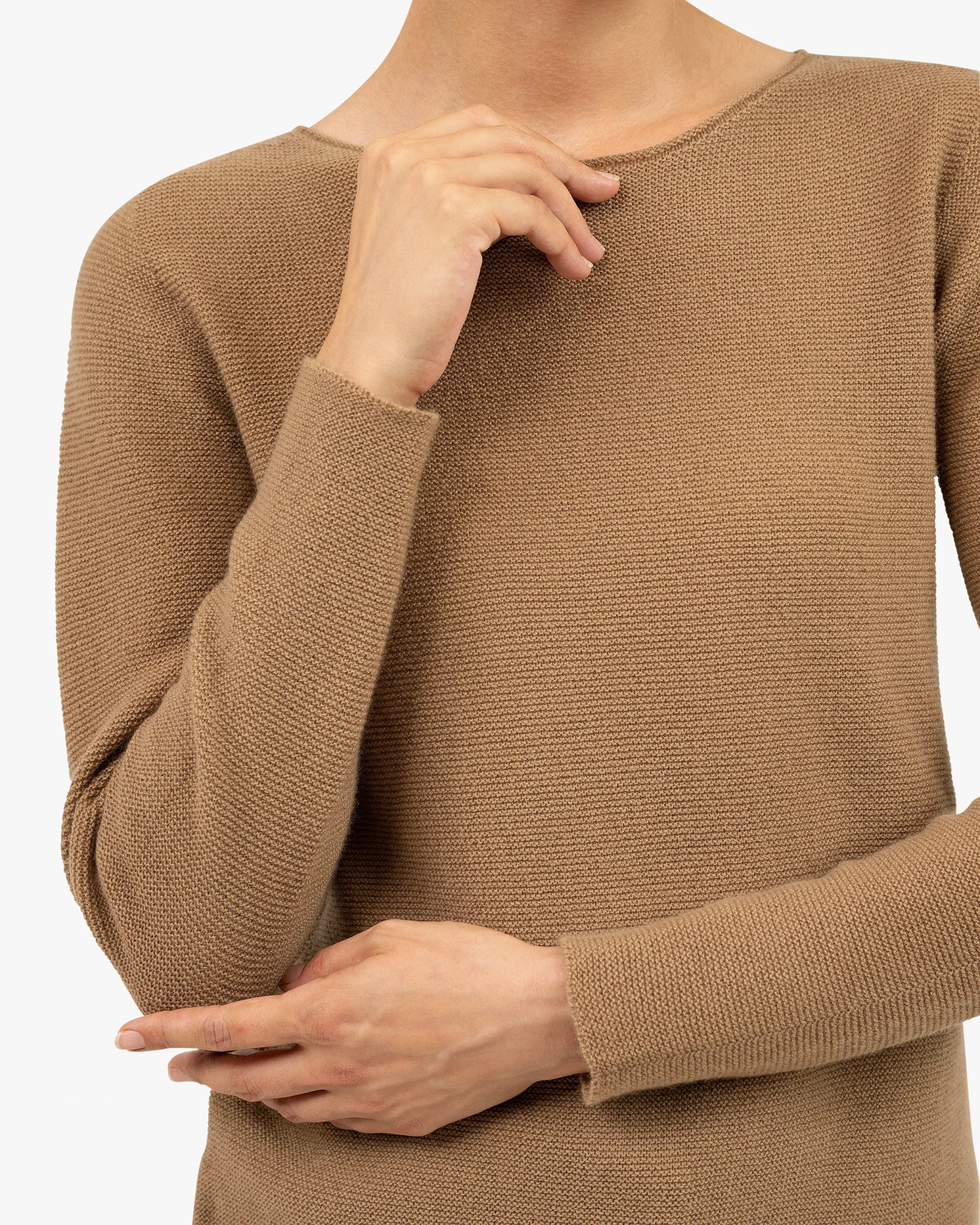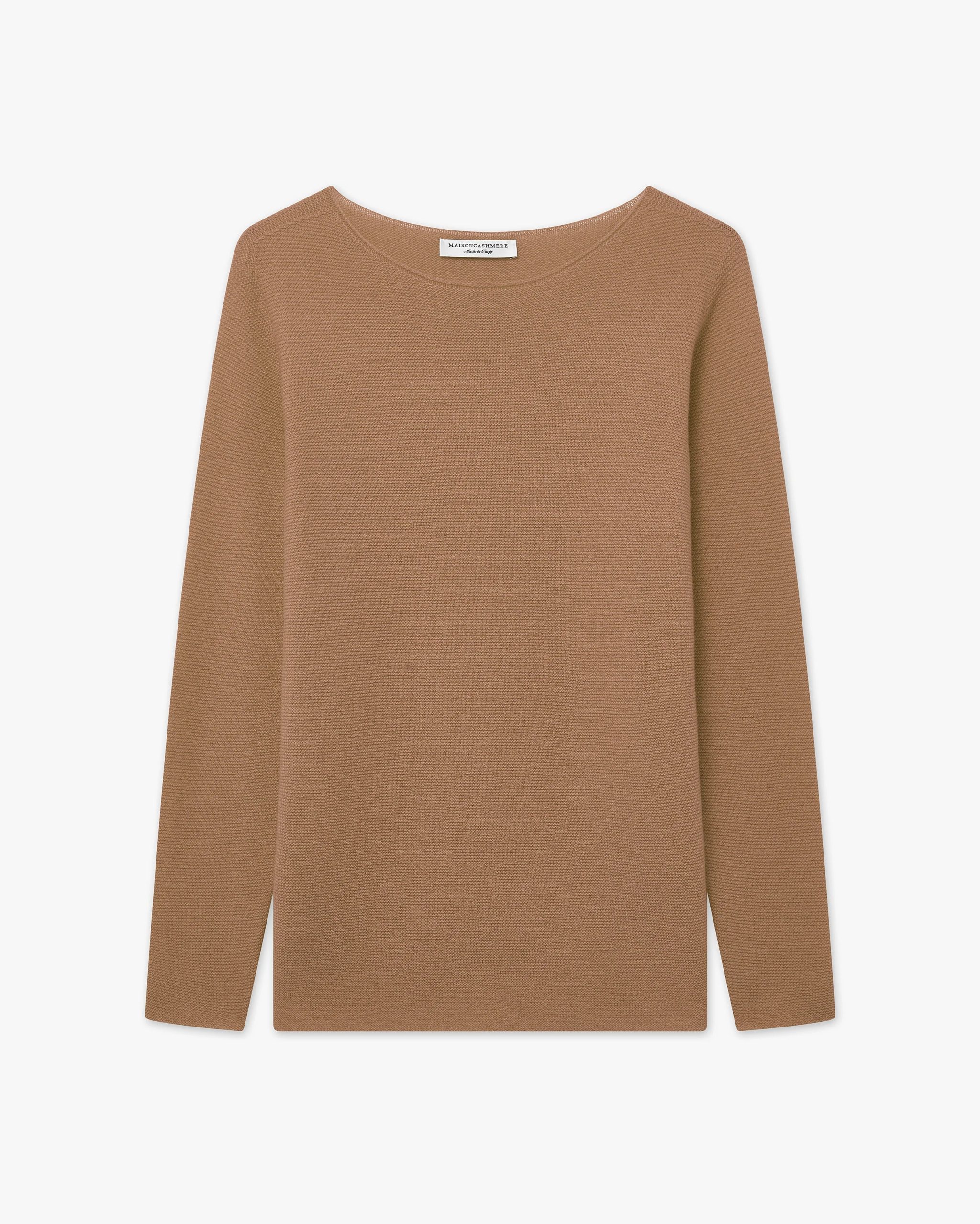 The most classic boat neck, with its clean and essential lines, is reimagined through refined links-stitch knitting and carefully finished raw-cut edges. This boat neck sweater adapts effortlessly to any outfit, becoming a key piece in any wardrobe. Its natural yarn ensures maximum softness and warmth.