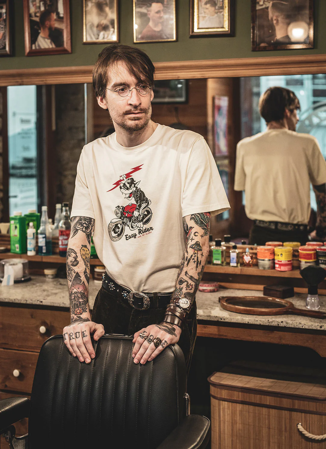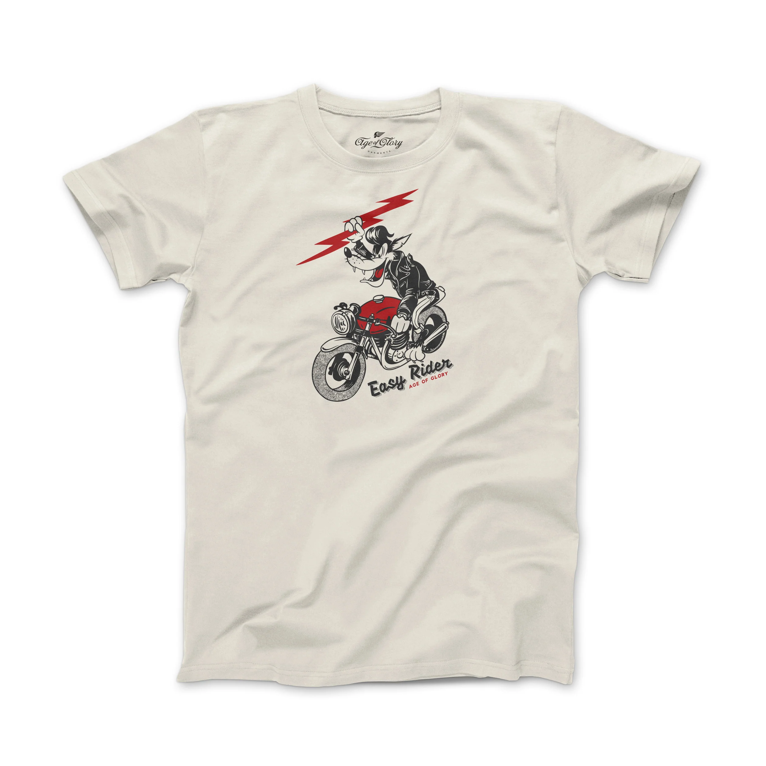 « Promenons-nous dans les bois, tant que le loup n’y est pas… » Et si finalement, l’histoire nous avait mal été contée… Et si le grand méchant loup n’était autre qu’un rider au blouson en cuir, en plein road-trip à la Easy Rider, en quête de liberté, perdu sur les routes de campagne, au milieu d’une forêt…. Et que Mère Grand n’était autre que sa vieille monture… Le chaperon rouge seulement un Graal imaginaire… On nous aurait menti ? Ou on aurait ramassé trop de champignons dans les bois… A vous d’écrire votre version de ce conte…
