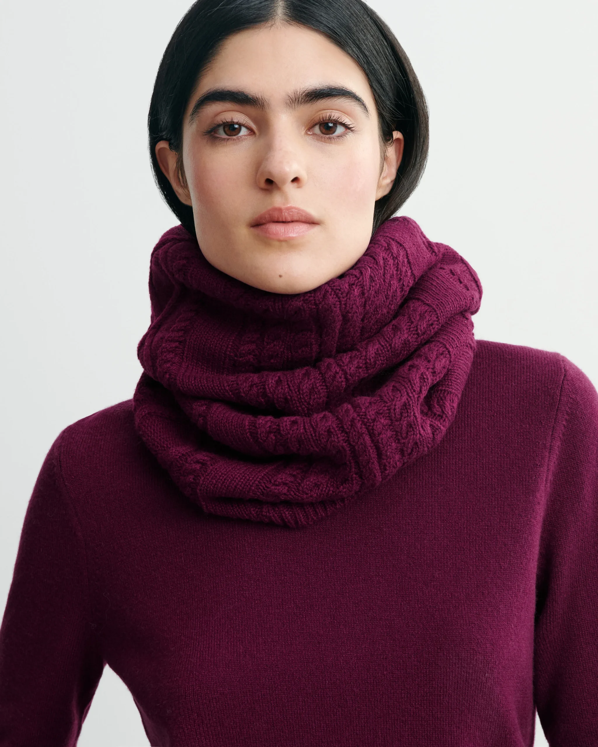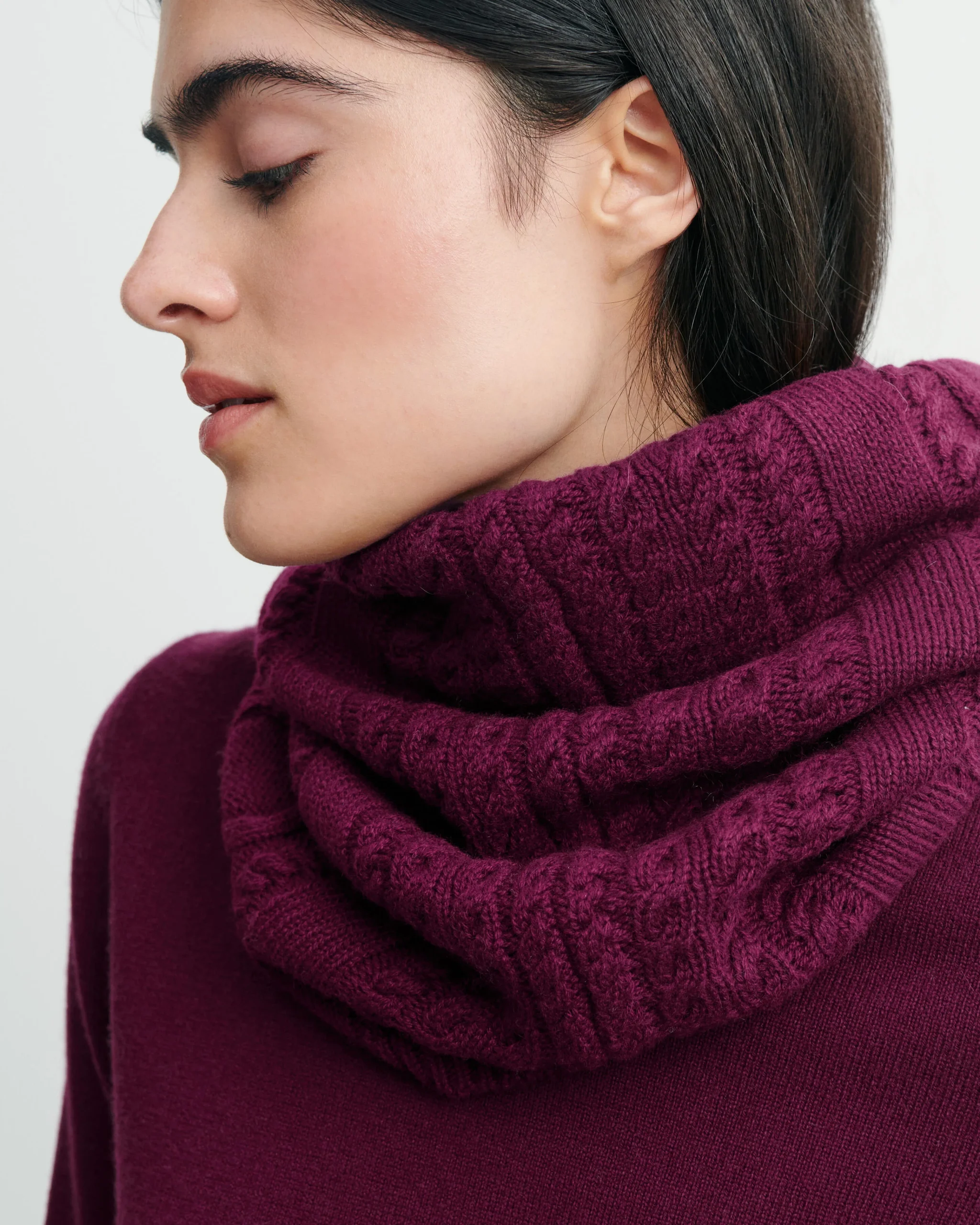 Tour de cou en cachemire. Modèle à torsades, avec finitions côtelées.