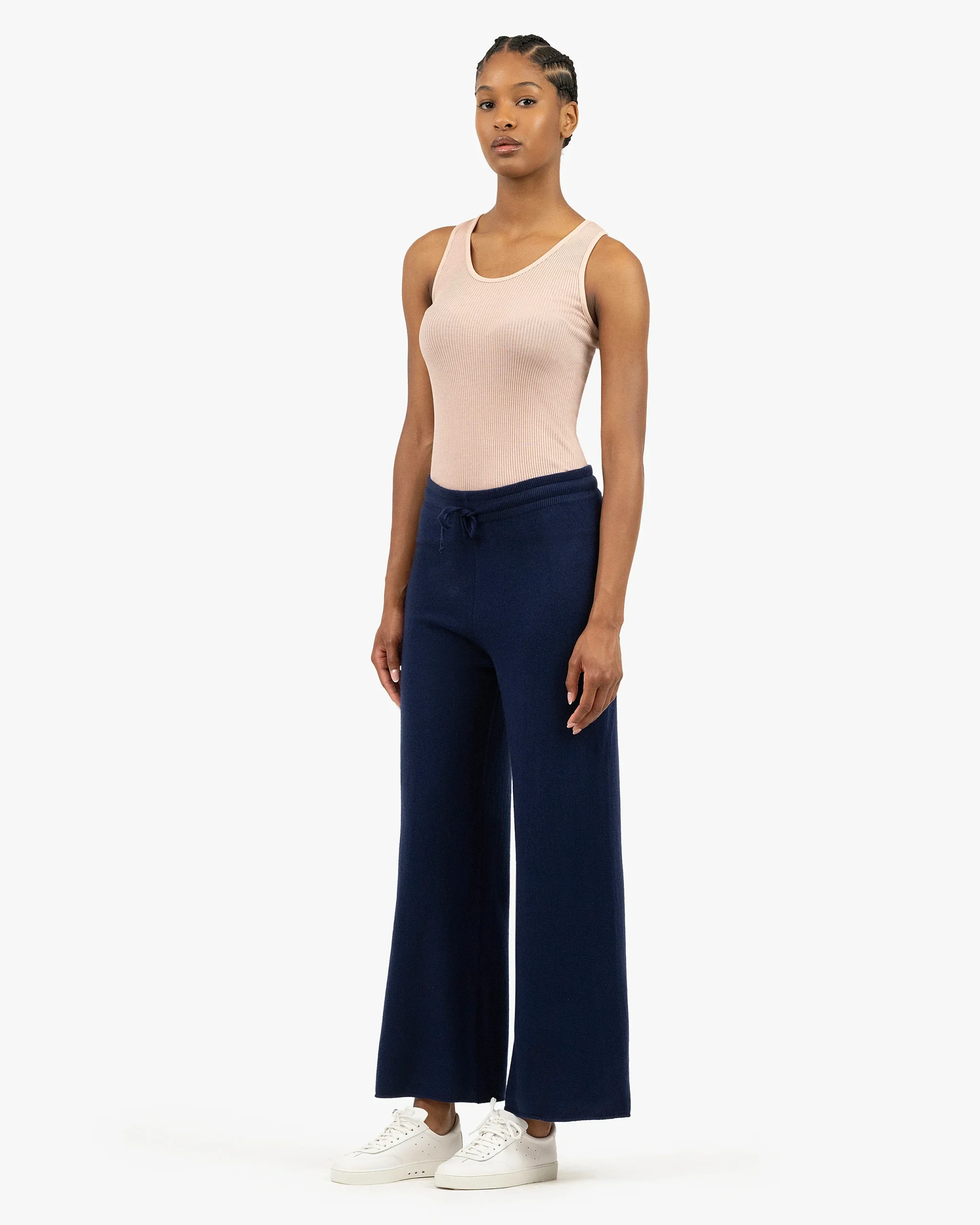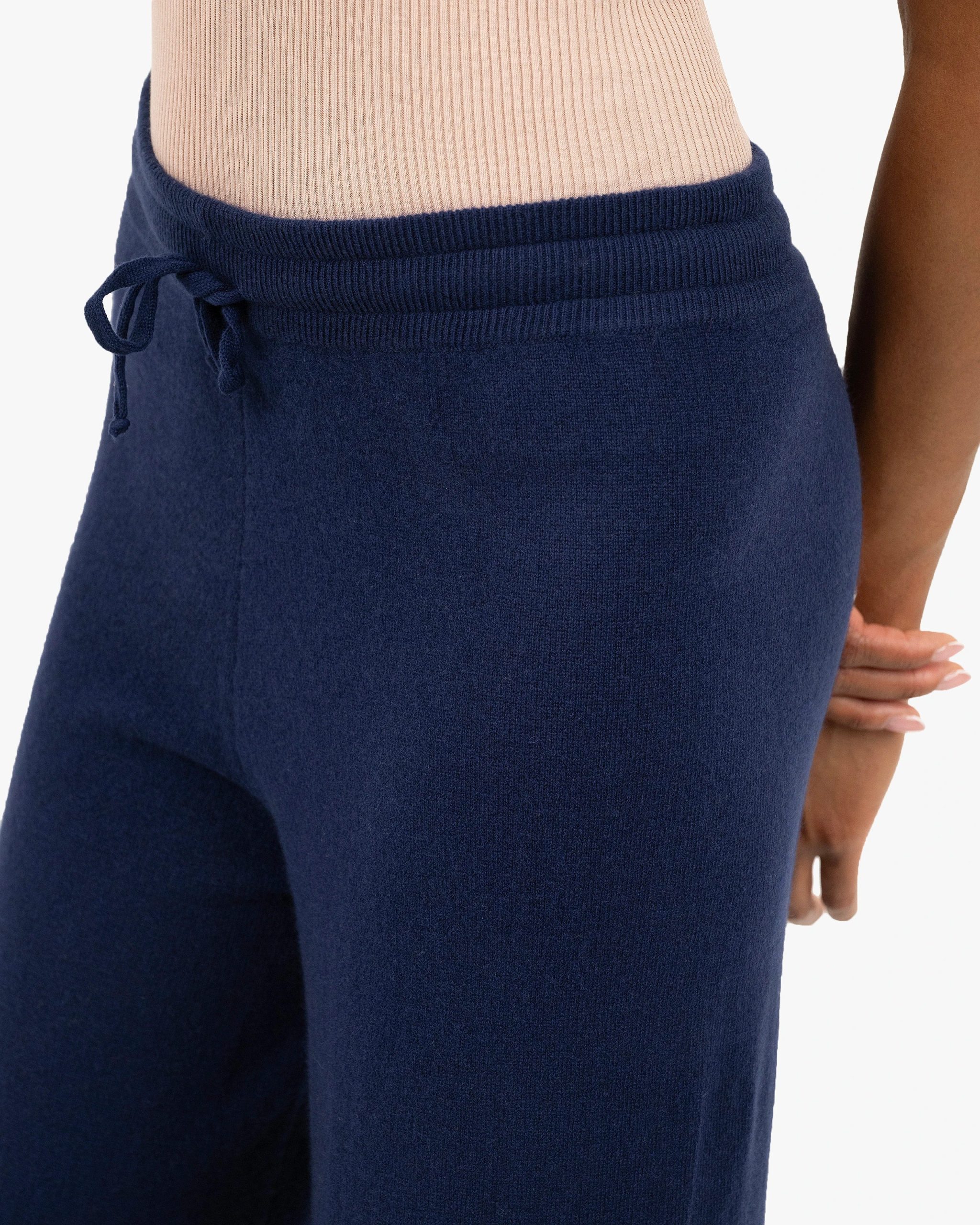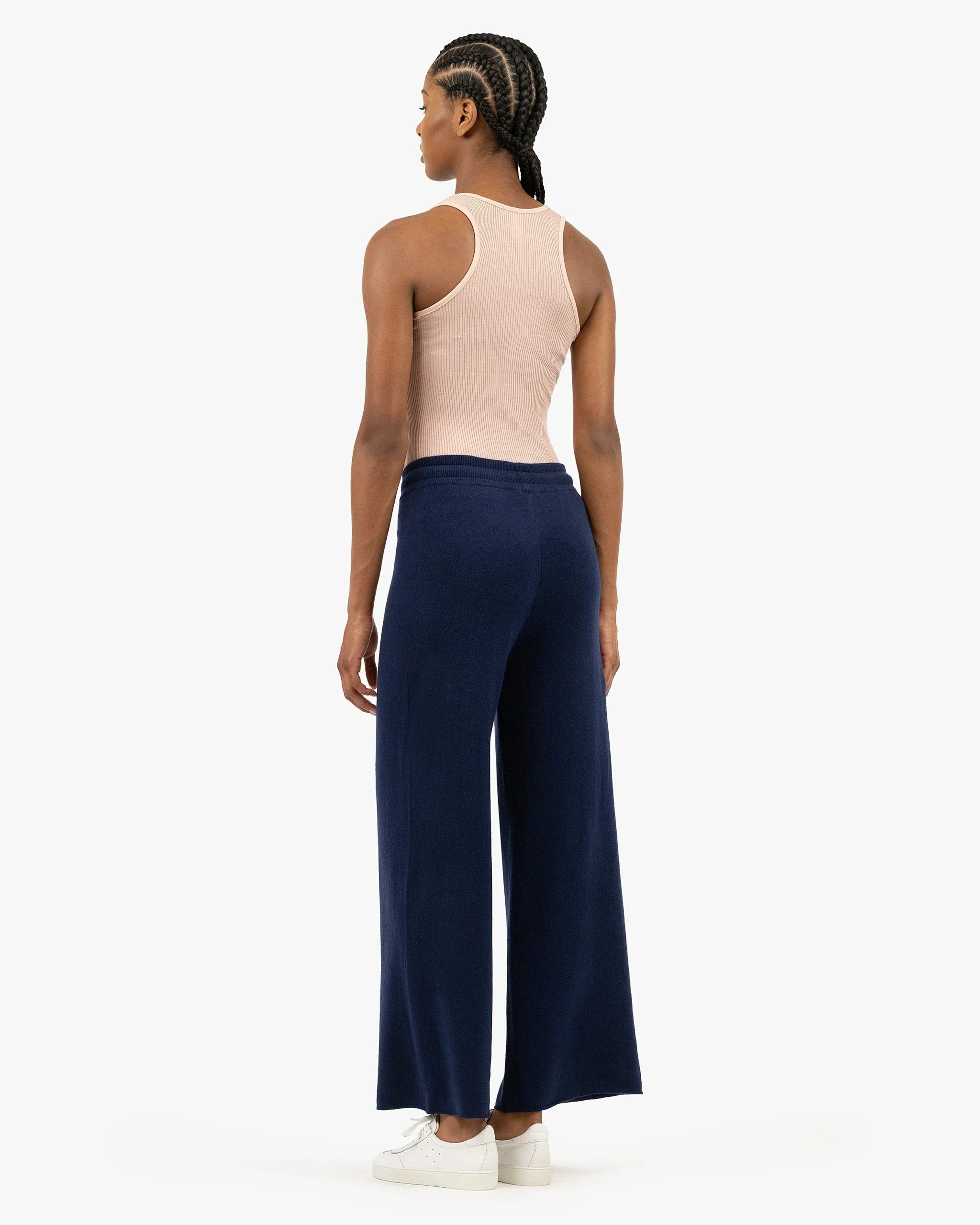 Softness, warmth and a sense of wrap-around comfort meet clean lines in these versatile sweatpants. Entirely crafted in plain knit, they feature a raw-cut hem that subtly interrupts the uniform texture. Perfect when worn as a twinset with the matching boat neck jumper.