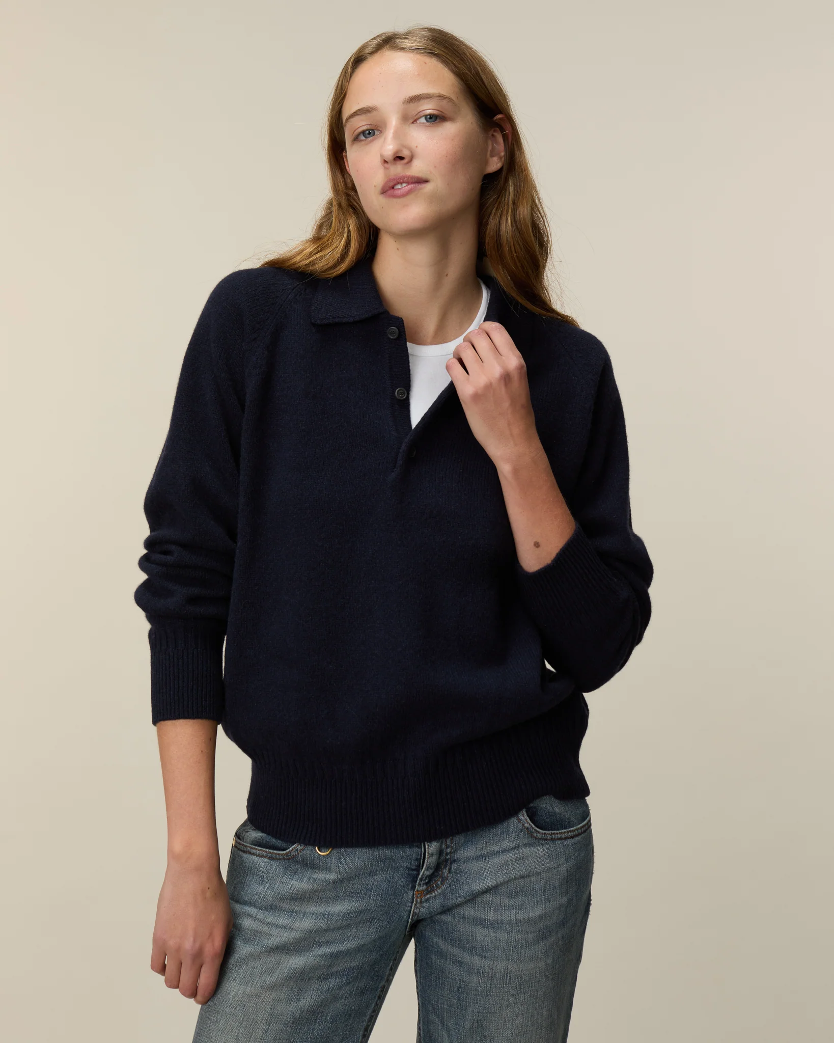 Tricot reimagines a French icon: the polo, in luxurious cashmere knit. With its slightly oversized cut, boxy volume and buttoned collar, it moves effortlessly from sport to chic. Versatile and timeless, it stands as a true signature piece of the Tricot wardrobe.