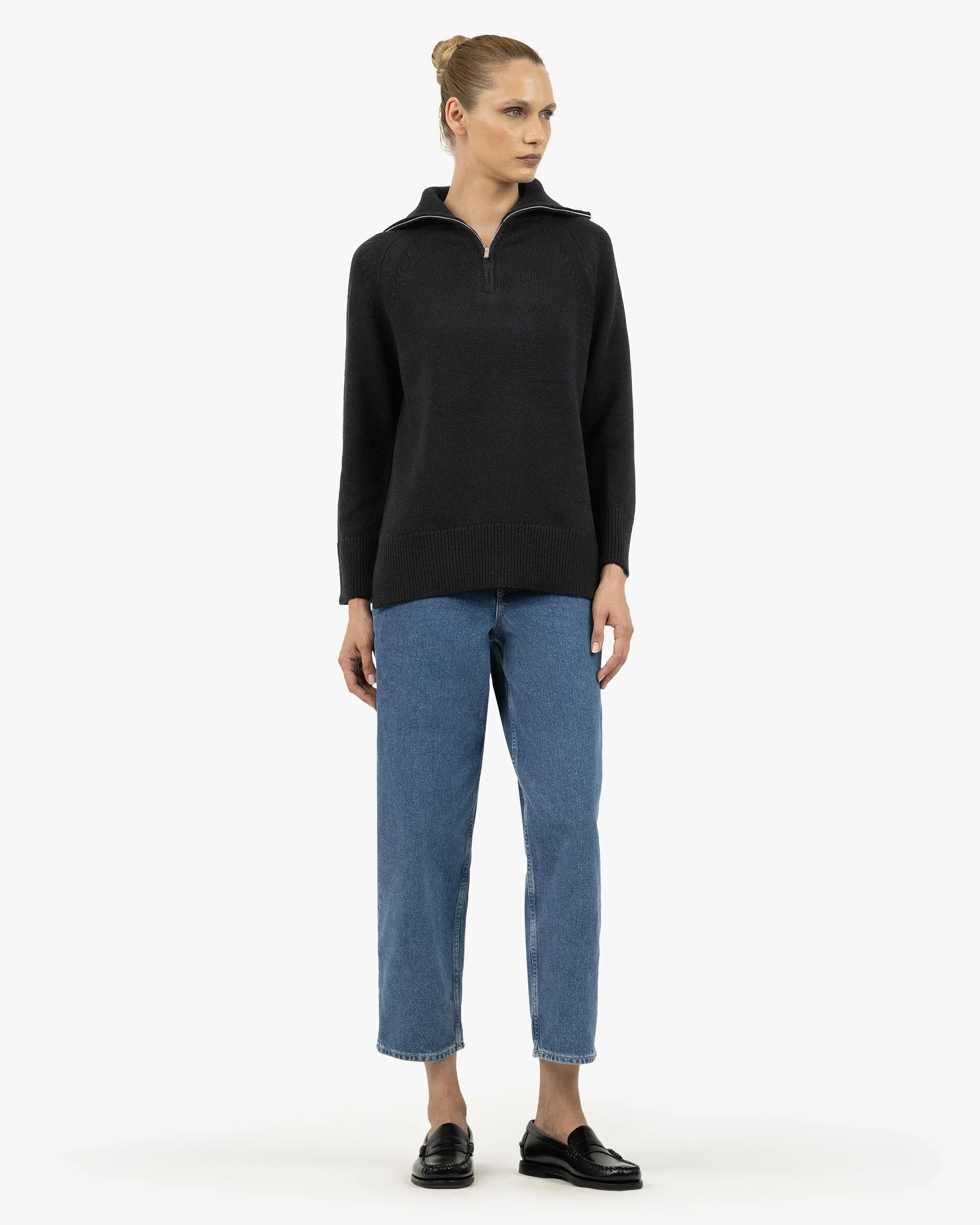 This oversized merino wool sweater is a masterpiece of comfort and style. Crafted in a high thickness, it offers a rich texture and enveloping warmth, ideal for colder days. The oversized design ensures a generous, relaxed fit. The high neck, enhanced by a practical zip, adds a modern touch. Perfect for those seeking an elegant and versatile piece, this jumper combines functionality and sophistication in one.