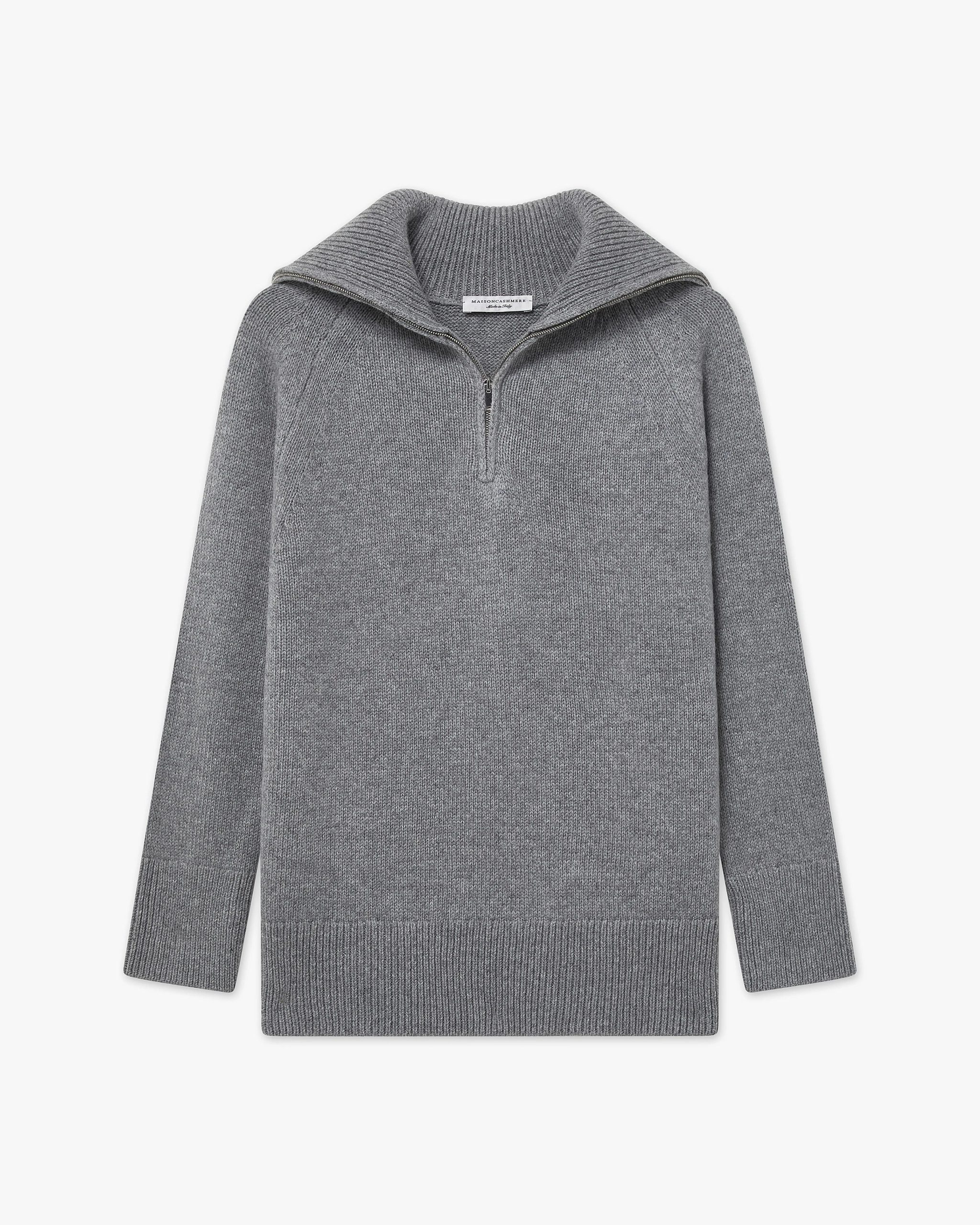 This oversized merino wool sweater is a masterpiece of comfort and style. Crafted in a high thickness, it offers a rich texture and enveloping warmth, ideal for colder days. The oversized design ensures a generous, relaxed fit. The high neck, enhanced by a practical zip, adds a modern touch. Perfect for those seeking an elegant and versatile piece, this jumper combines functionality and sophistication in one.