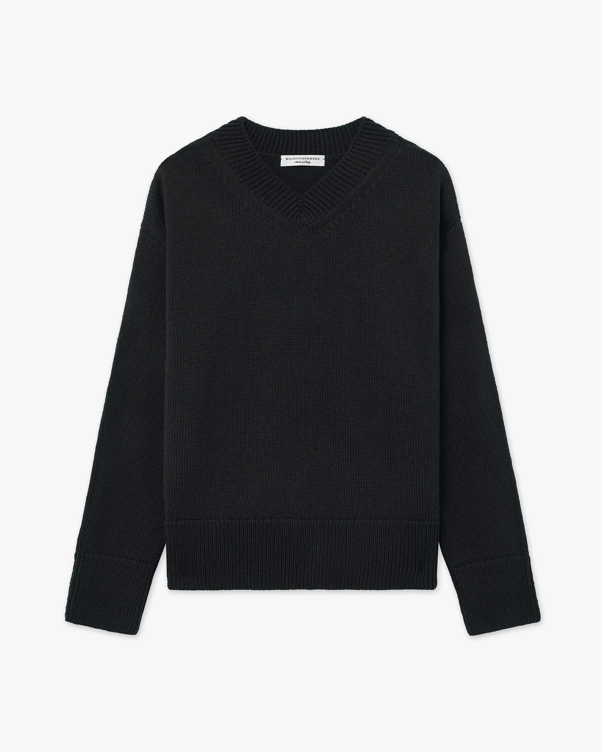 This oversized V-neck merino wool sweater strikes the perfect balance between comfort and sophisticated style. Crafted in a high thickness, it envelops the body with a warm texture and exceptional softness. The oversized design, paired with the classic V-neckline, offers a relaxed fit ideal for creating casual, contemporary looks. Perfect for the colder seasons, this sweater will become a wardrobe essential.