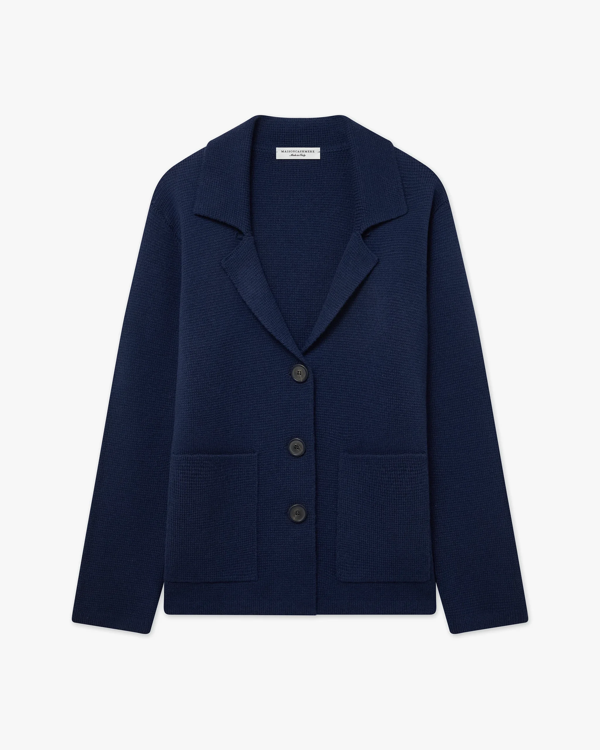 The most classic design is reimagined with borderless neckline finishes, patch pockets and a button fastening with shell mother-of-pearl buttons. Crafted in a fine gauge pure merino wool, this is a feminine and elegant piece.