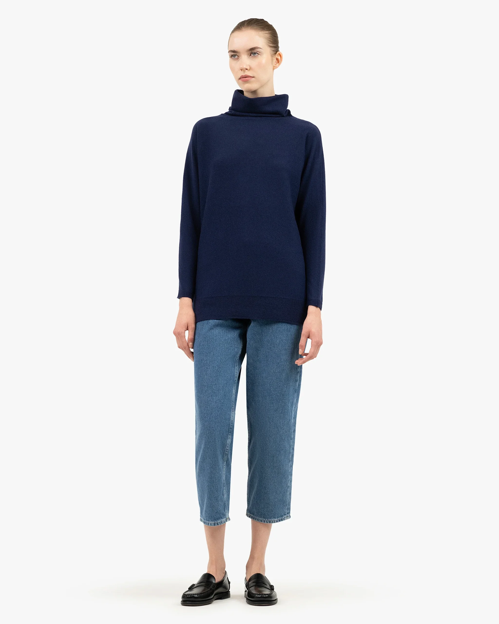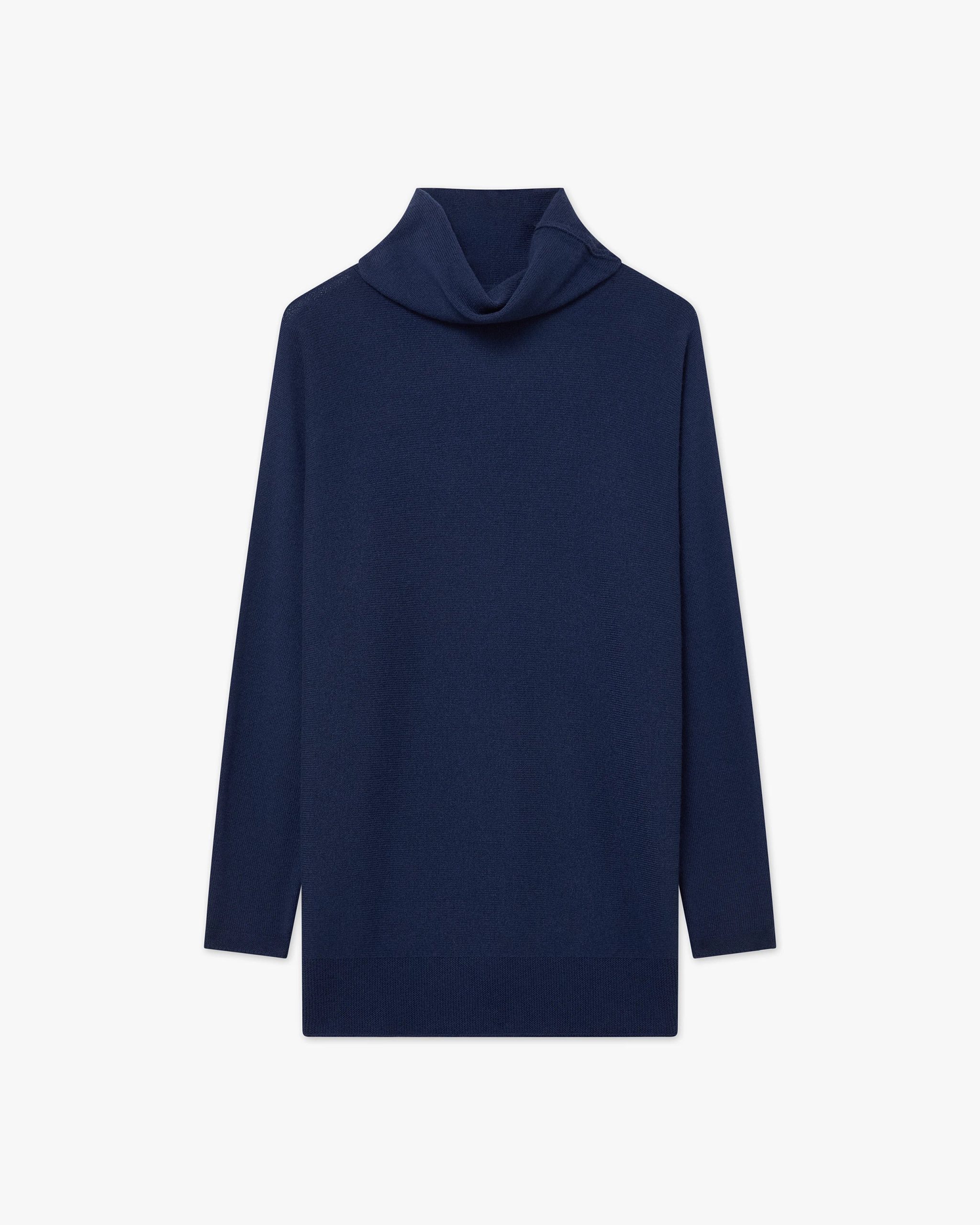 A reimagined and comfortable turtleneck crafted in a medium gauge pure merino wool. A feminine style, perfect for everyday wear. Thanks to its tall, well-structured finishes, it ensures both comfort and elegance.