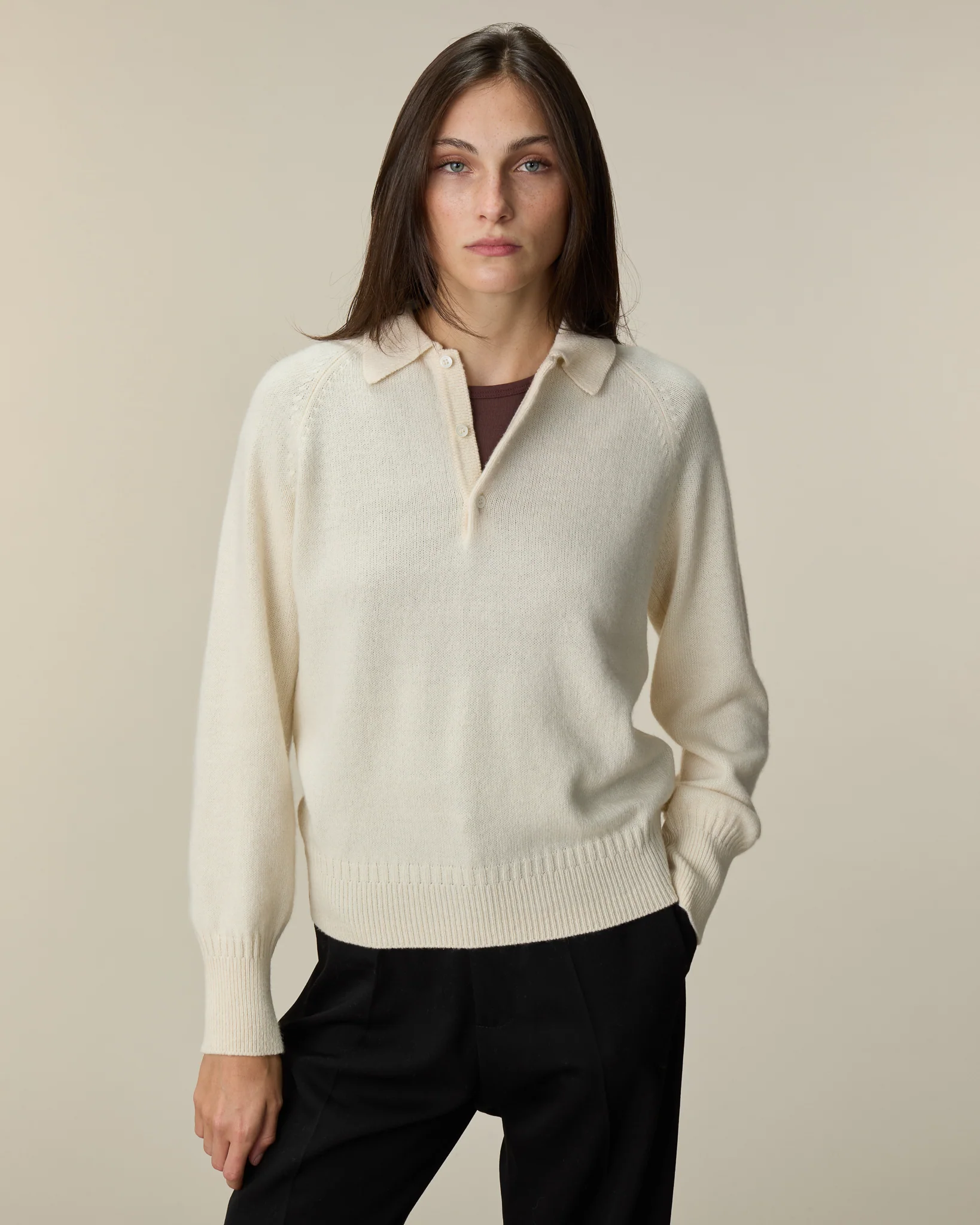 Tricot reimagines a French icon: the polo, in luxurious cashmere knit. With its slightly oversized cut, boxy volume and buttoned collar, it moves effortlessly from sport to chic. Versatile and timeless, it stands as a true signature piece of the Tricot wardrobe.