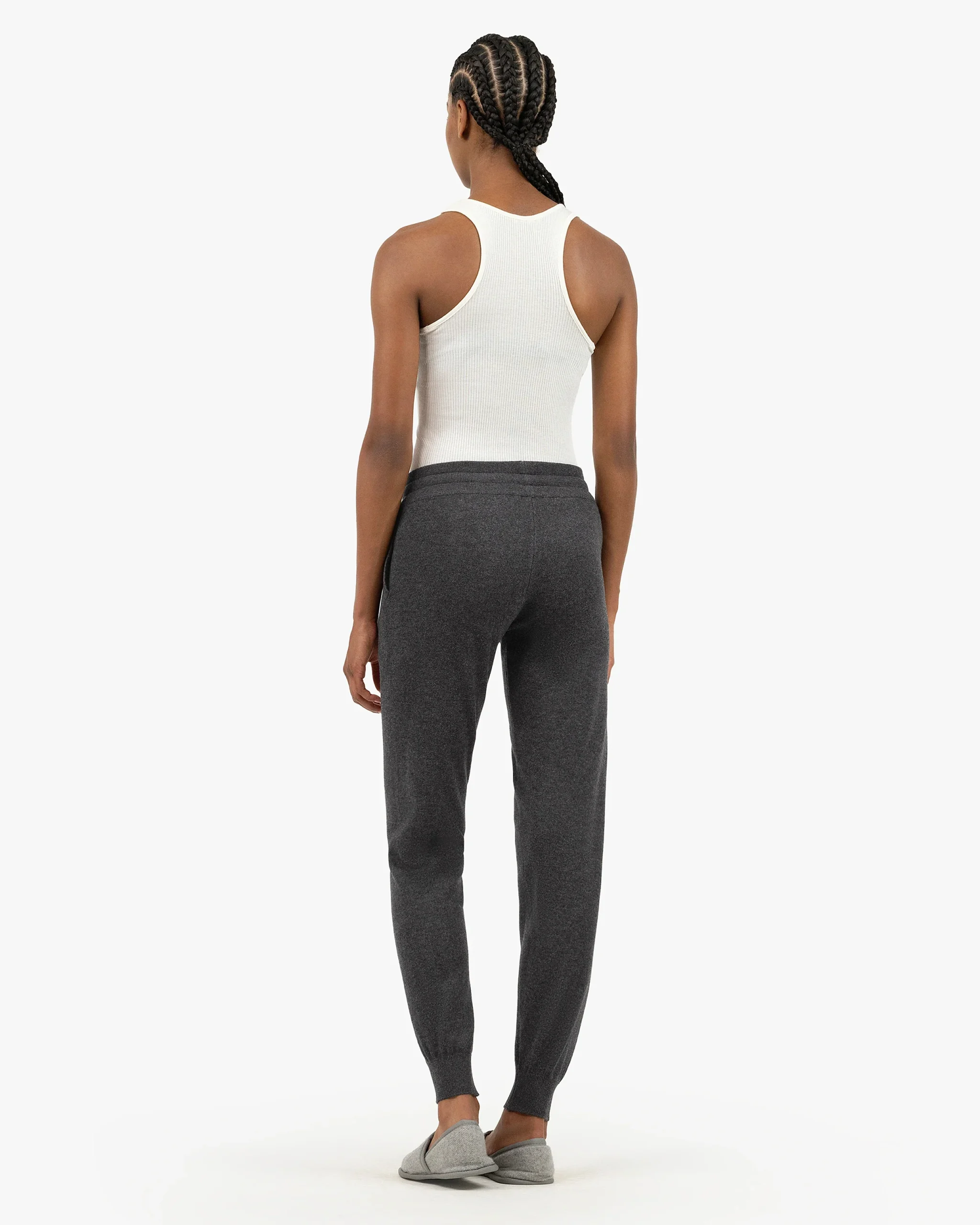 Wearing these pure cashmere knit trousers is an experience beyond words. Whether during your downtime or moments of leisure, you can always count on an outfit that enhances your style and sets you apart. Perfect for shopping or outdoor strolls, they’ll make you feel your best. Pair them effortlessly with our matching hoodie, crew neck jumper, tank top or t-shirt – all in 100% cashmere.