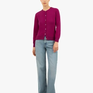 Essential Crew Neck Cardigan – Magenta