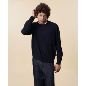 Dark navy lightweight cashmere crewneck for men