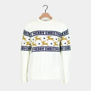 Pull de Noël Chic pour Enfants Blanc avec Rennes Coton Bio