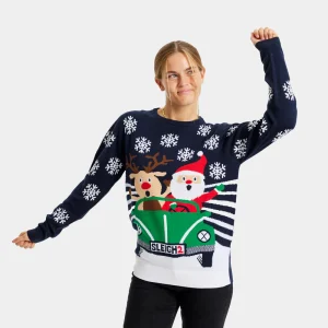 Pull de Noël Vert avec Père Noël et Cadeaux