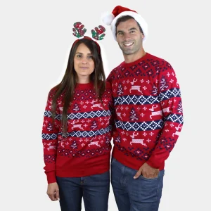 Pull de Noël pour Famille Rouge Classique Étoiles Polaires