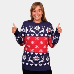 Pull de Noël pour Famille Rennes et Cœurs Bleu et Rouge